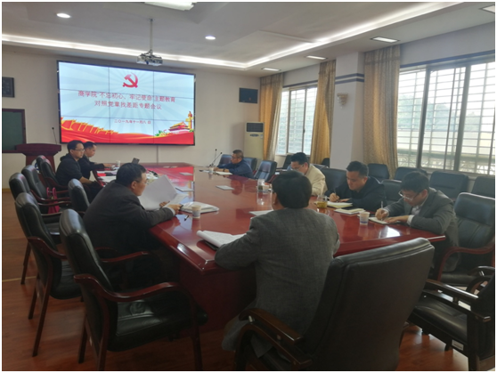 11月8日下午三点,湖南科技大学商学院在第三教学楼301会议室召开“不忘初心、牢记使命”主题教育——对照党章党规找差距专题会议。学校第五巡回督导小组组长、学工处处长尹风雨,商学院党委书记贺胜兵、院长潘爱民,湖南创新发展研究院院长彭文斌等商学院党委委员和领导班子成员出席了本次会议,会议由贺胜兵主持。