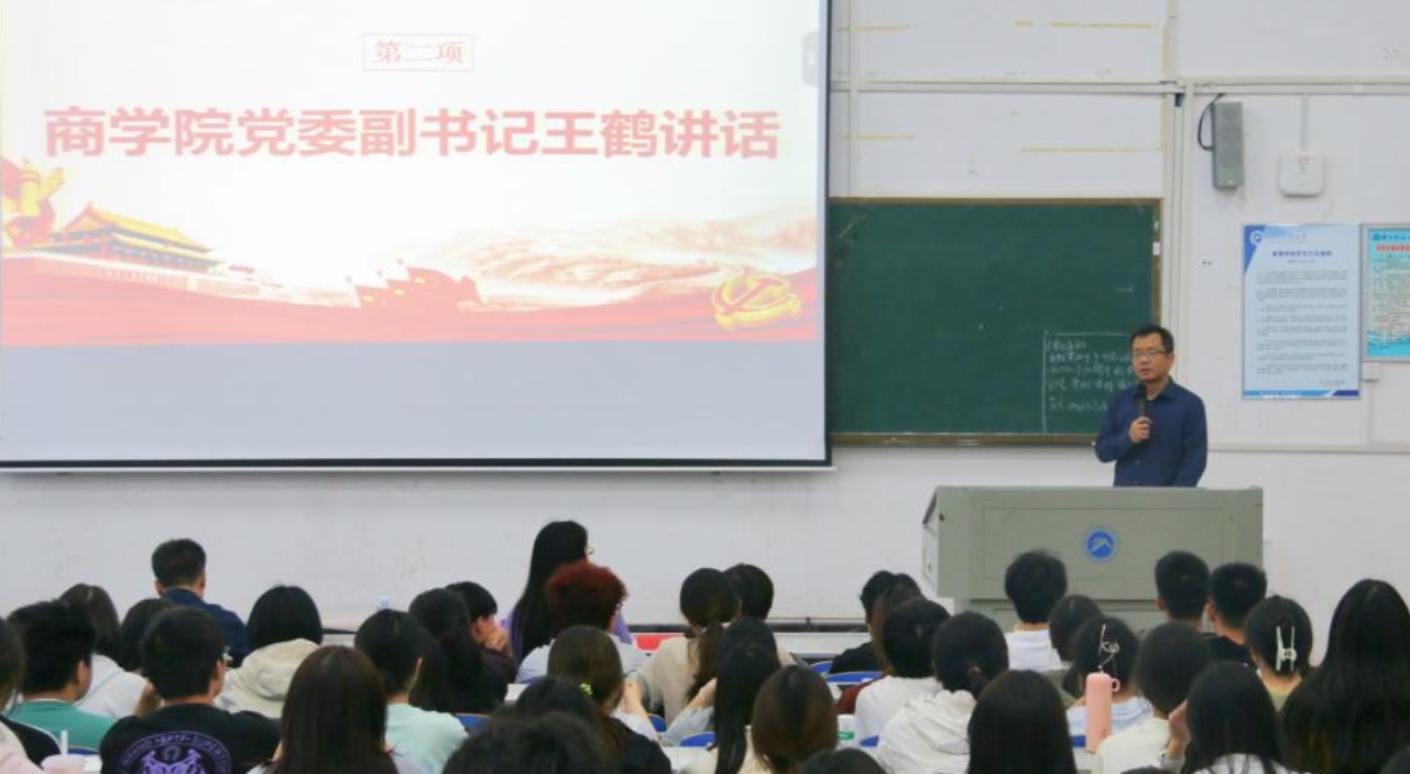 ▲商学院党委副书记王鹤讲话