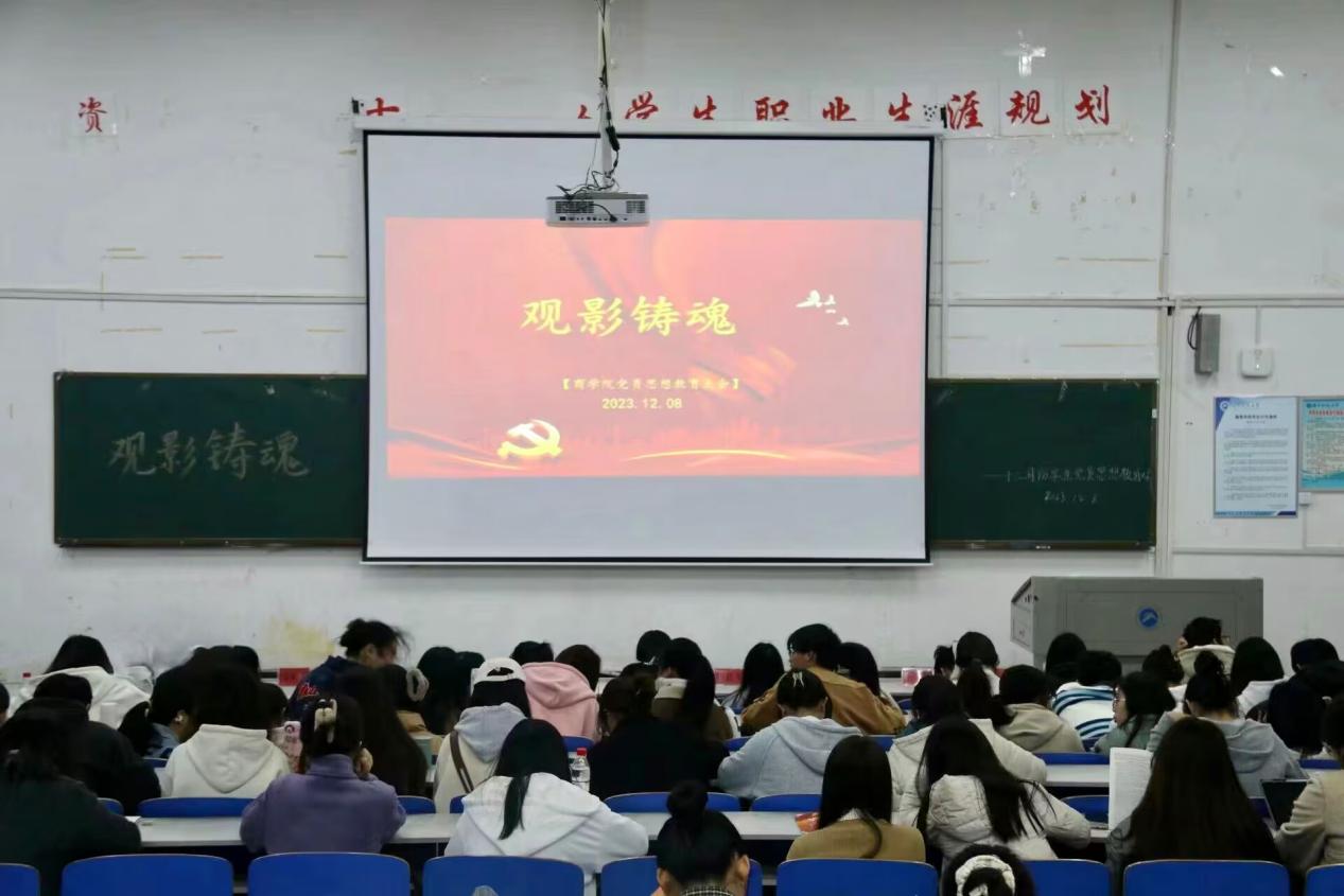 2023年12月8日下午,湖南科技大学商学院在一教204召开以“观影铸魂,深学笃行”为主题的党员思想教育大会。商学院党建组织员蔡美玲以及全体学生党员参加观影活动。
