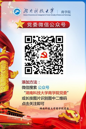 添加方法:打开微信客户端,搜索公众号“湖南科技大学商学院党委”,也可直接二维码扫描以下图片,点击关注。感谢大家对学院党委工作的鼎力支持!