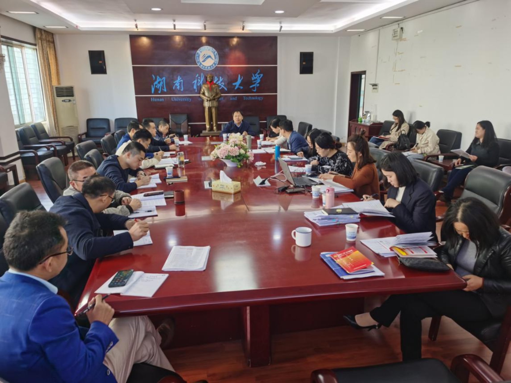 11月10日上午,我院党委理论学习中心组在三教301会议室进行集中学习。学院党委委员贺胜兵、潘爱民、叶文忠、傅早霞、邓淇中、赵瑞霞,副院长张志彬、全体党支部书记及三办主任参与本次集中学习。会议由党委书记贺胜兵主持。