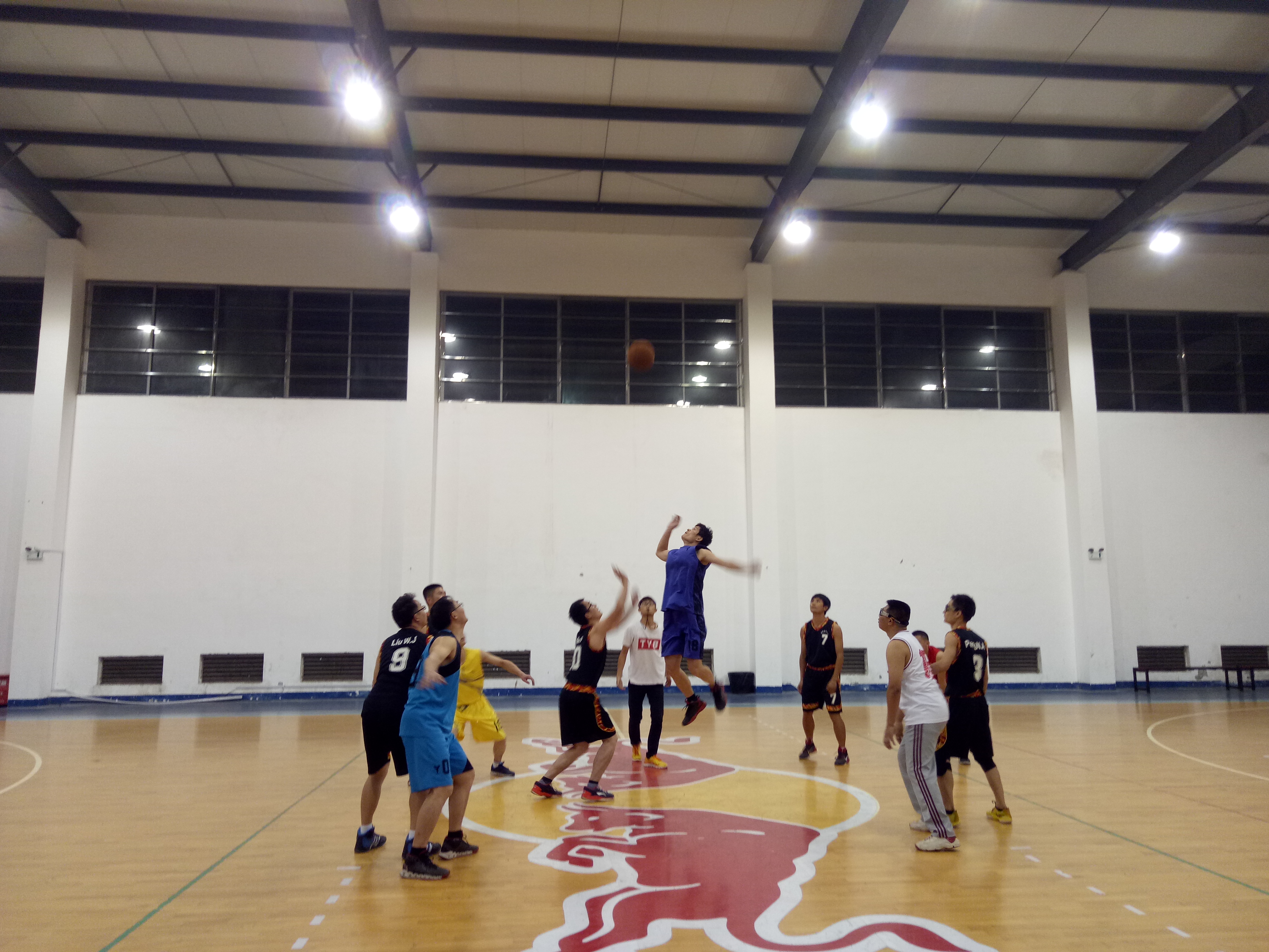 下半场,我院每位队员都积极跑位,为队友作掩护,时不时有各种漂亮的配合以及精彩的上篮,尤其在比赛末尾,我院陈攀老师在参与了整场比赛的情况下,靠着顽强的精神,连续上演了几个神乎其技的突破然而比赛时间渐渐流逝,随着终场哨声响起,我院最终以四分之差遗憾落败。比赛过程中,双方参赛队员都全力以赴,积极防守,果断进攻,越战越勇,显示了他们极佳的篮球水平以及心理素质。