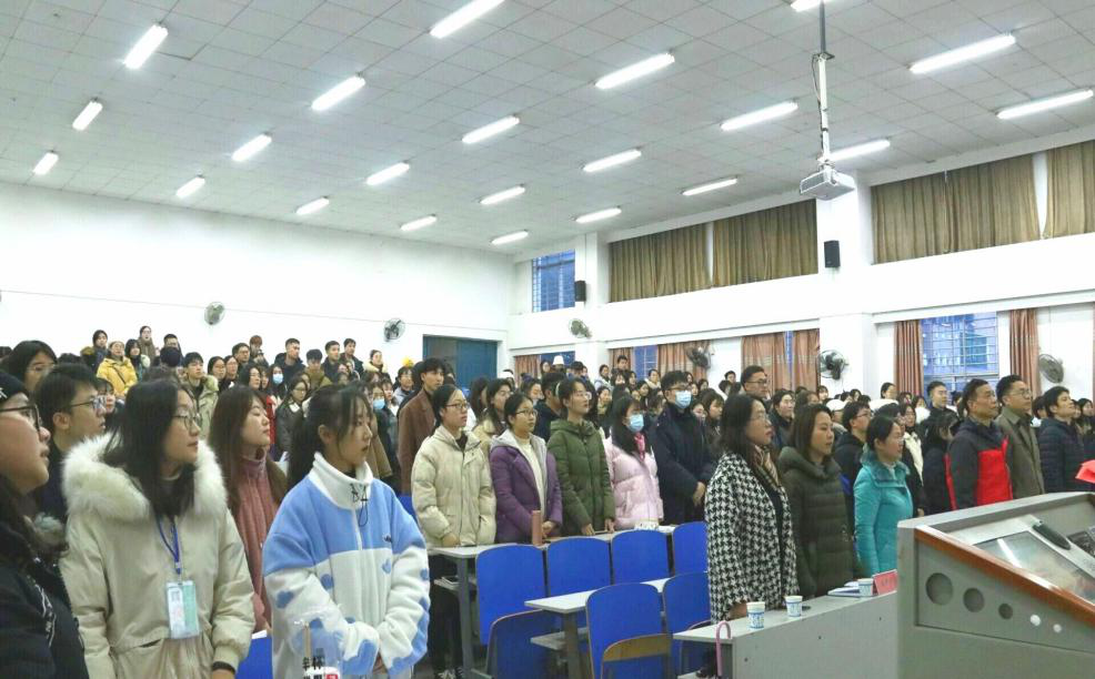 在慷慨激昂的《国际歌》声中,全体与会人员肃立。61位新发展党员整齐有序地站立于党旗前,学生党员张逸宁带领全体新发展党员宣誓、老党员重温誓词,新发展党员在本次宣誓中更加明确了自己今后的责任,坚定了为人民服务的决心。接着观看了《疫情中的模范党员》学习视频,从抗疫榜样中汲取力量,学习和弘扬“生命至上,举国同心、舍生忘死、命运与共”的伟大抗疫精神,在座党员同志感慨颇深。