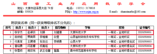 “金地杯”山西省大学生数学建模竞赛是山西省工业与应用数学学会、全国大学生数学建模竞赛山西赛区组委会共同主办的面向全省大学生的科技竞赛,旨在激励学生学习数学的积极性,提高学生运用数学方法和计算机技术解决实际问题的能力,培养学生的创新思维和团队合作精神。本次竞赛吸引了来自全省50多所高校的2000余支队伍参加,竞争非常激烈。金地杯奖为大赛最高奖项,本科组仅设一个名额,此次获奖实现了我校学子在该奖项中的历史性突破。