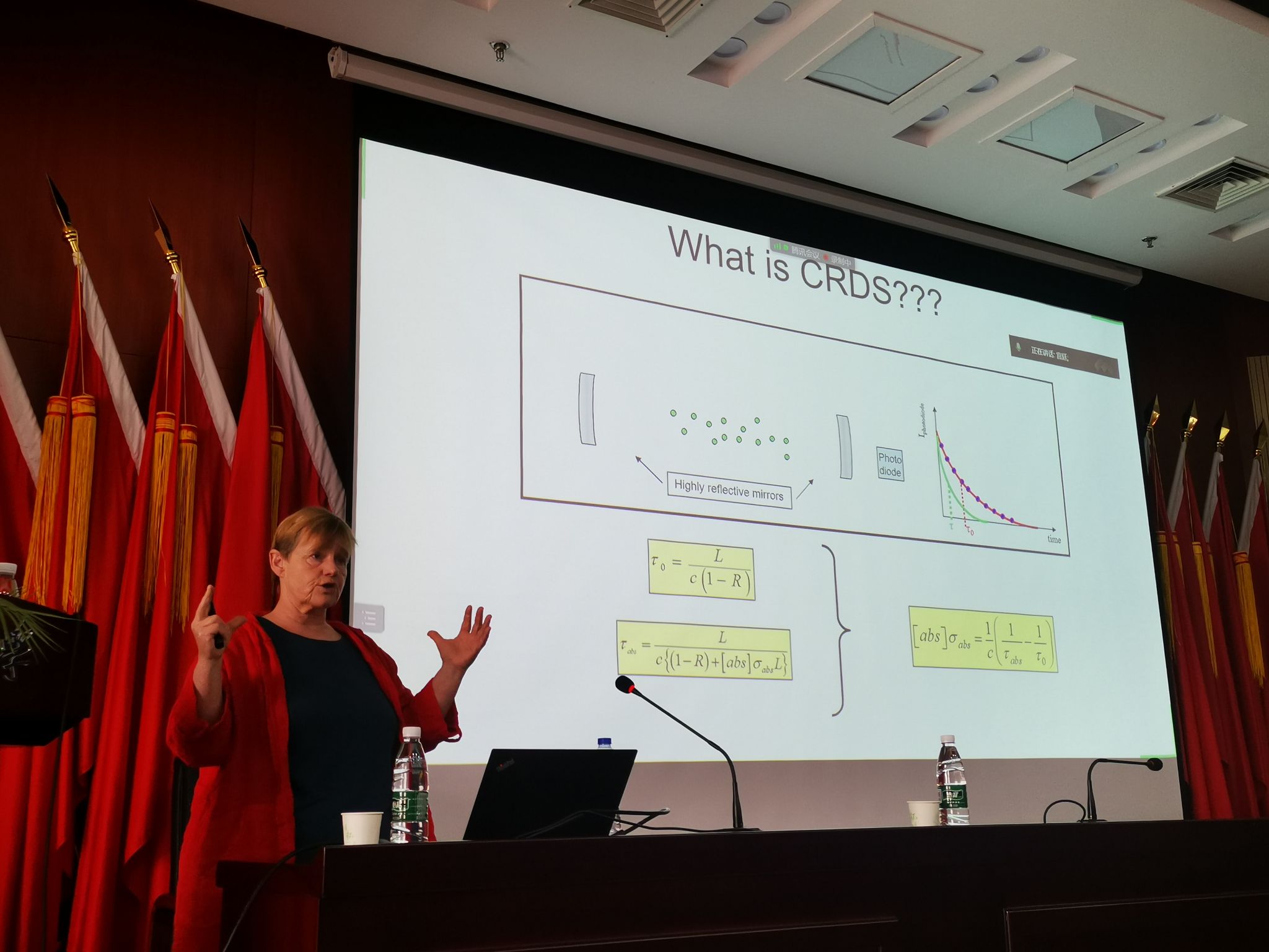 Ruth教授是宽带腔增强技术创始人,是科克大学物理系激光光谱团队创始人和负责人,从事与气相、液相和固相化合物的激光光谱和光物理的研究。其报告题目为《Incoherent Broadband Cavity-Enhanced absorption Spectroscopy: Applications in Atmospheric Simulation Chambers》。报告以非相干宽带腔增强吸收光谱在大气模拟室中的应用展开,介绍了非相干宽带腔增强吸收光谱(IBBCEAS)在真实大气条件下的大气模拟室中原位检测大气痕量气体和自由基(NO3,NO2,O3,H2O)的应用。