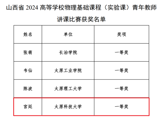 应用科学学院一直以来重视青年教师教学能力的培养和提升,积极鼓励青年教师积极参加各项教学竞赛。通过“以赛促教”,积极推进教学改革,把先进的和代表未来的教学理念、教学模式、教学方法传递给年轻的物理教师,切实提高教学质量,落实高校立德树人,以人为本的根本任务,为国家培养物理教育教学的优秀人才。