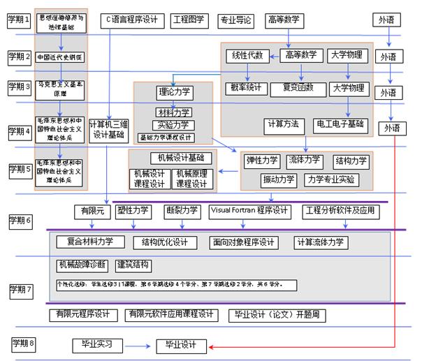 本专业学生学习力学、数学、计算机、工程技术等基本理论和知识,具有扎实的力学基础,并具备应用计算机和现代实验技术手段解决与力学有关的工程问题的基本能力。学生接受必要的工程技能、计算机编程及大型工程分析软件应用训练,培养应用大型工程分析软件进行工程结构设计与分析的能力,培养维护与开发工程软件的能力。