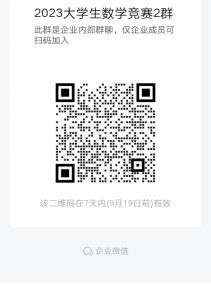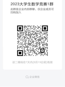 所有报名同学加入企业微信群:2023大学生数学竞赛1群、2群。后续相关通知信息将在群里发布。