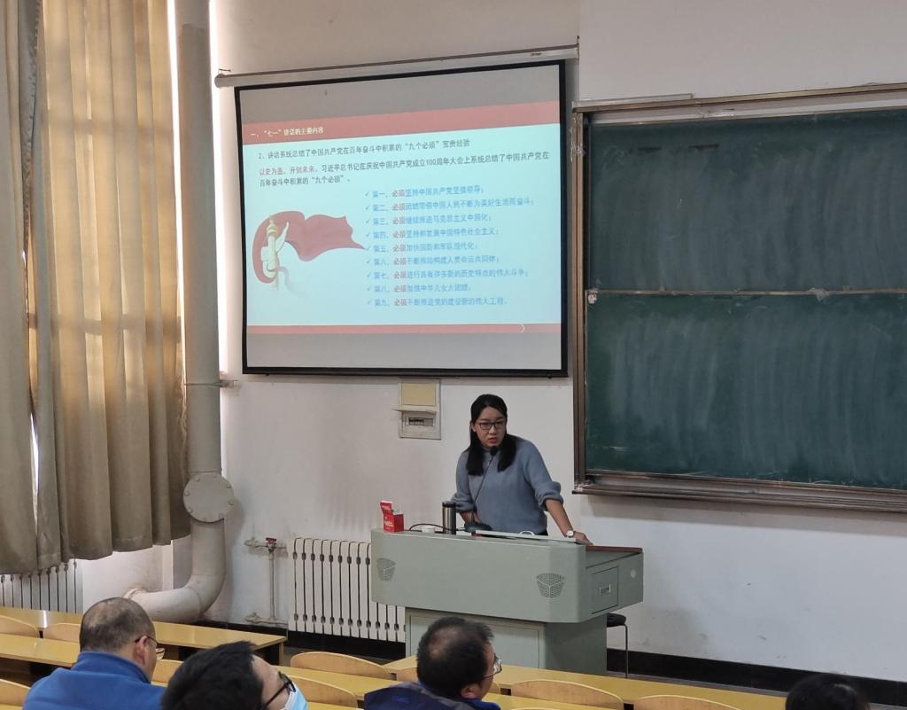 为深入学习贯彻习近平总书记“七一”重要讲话精神,2021年11月10日15时,应用科学学院党委邀请校党史学习教育宣讲团张慧婷老师为我院师生开展了题为“中国共产党百年奋斗的九大历史经验”的党史学习教育宣讲会。学院领导班子成员、组织员、部分教师代表和学生党员共计60余人参加了会议。会议由学院党委副书记杨耀田主持。