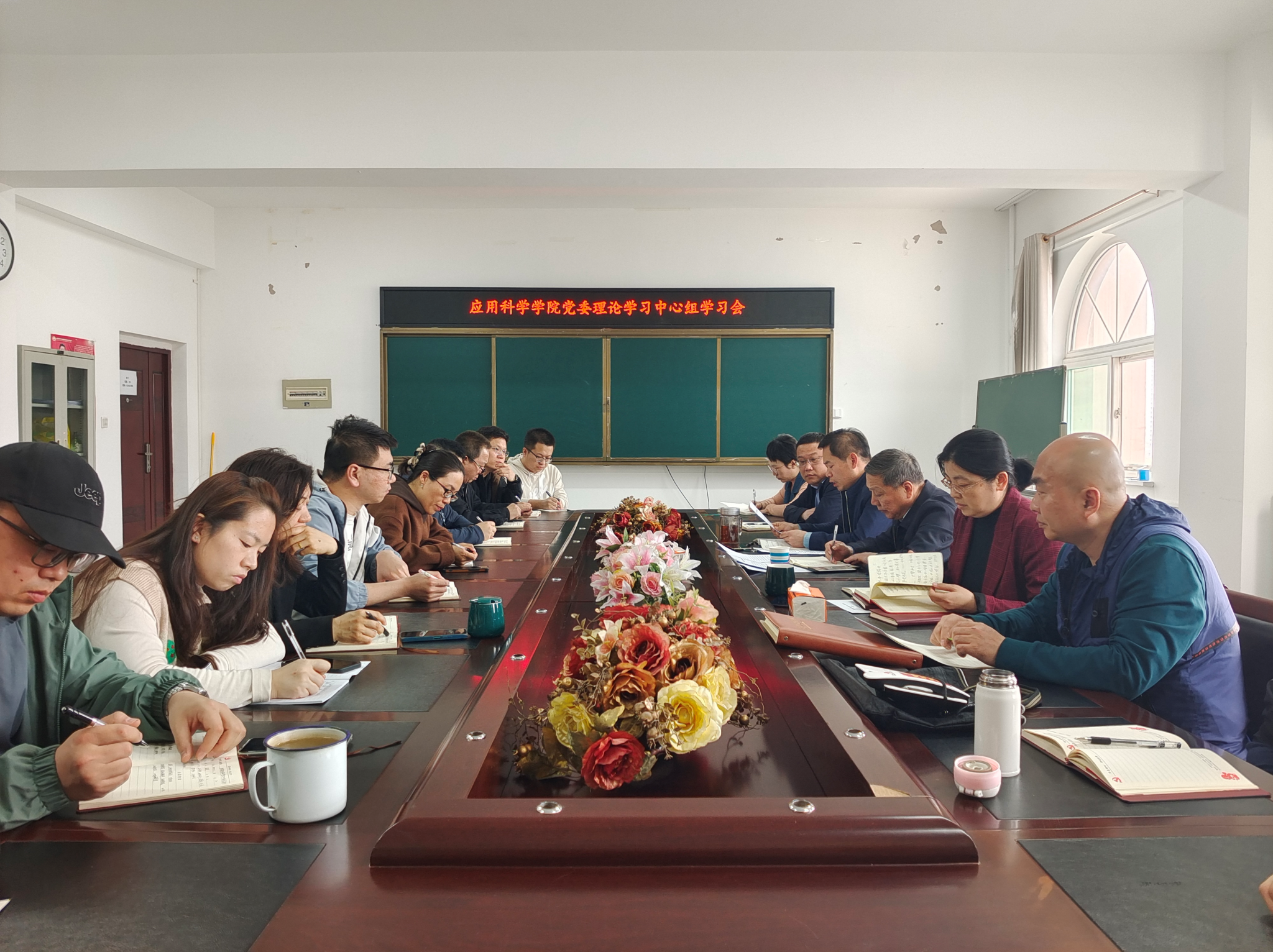 4月3日,应用科学学院在行远楼701室召开党委理论学习中心组(扩大)学习会,围绕2024年全国两会精神,结合实际,专题研讨学院在“加快推进高等教育高质量发展”方面的目标和举措。校党委常委、副校长刘向军到会指导,院党委书记彭英主持,学院领导班子成员、科级干部、党委委员、院工会主席、党支部书记、各系主任和部分师生代表参加会议。