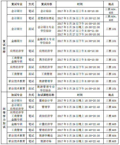 1、2017年3月25日9:00-17:00办理报到和资格审查手续,地点:湖南科技大学综合办公楼主楼一楼。办完报到和资格审查手续后,请到第三教学楼(商学院)一楼101室进行确认并上交复试情况登记表。