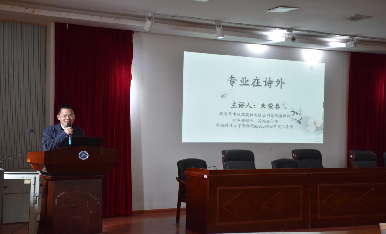 3月22日下午3点,蒙西华中铁路股份有限公司蒙陕指挥部部长、高级会计师朱孟春先生应邀来我校讲学。此次讲座由颜剩勇教授主持,商学院党委书记潘爱民教授和一百多名硕士研究生参加了讲座。