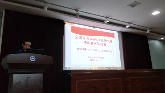 4月11日晚,全国第五届MPAcc案例大赛西南赛区选拔赛暨湖南科技大学MPAcc案例大赛校园赛在三教101隆重举行。商学院傅早霞书记、商学院颜剩勇教授出席此次比赛,陈湘州教授、童杰成教授、刘剑民教授、罗文兵教授、彭清华教授、杨继平教授、刘谷金教授和杨晓璇老师担任此次比赛评委。