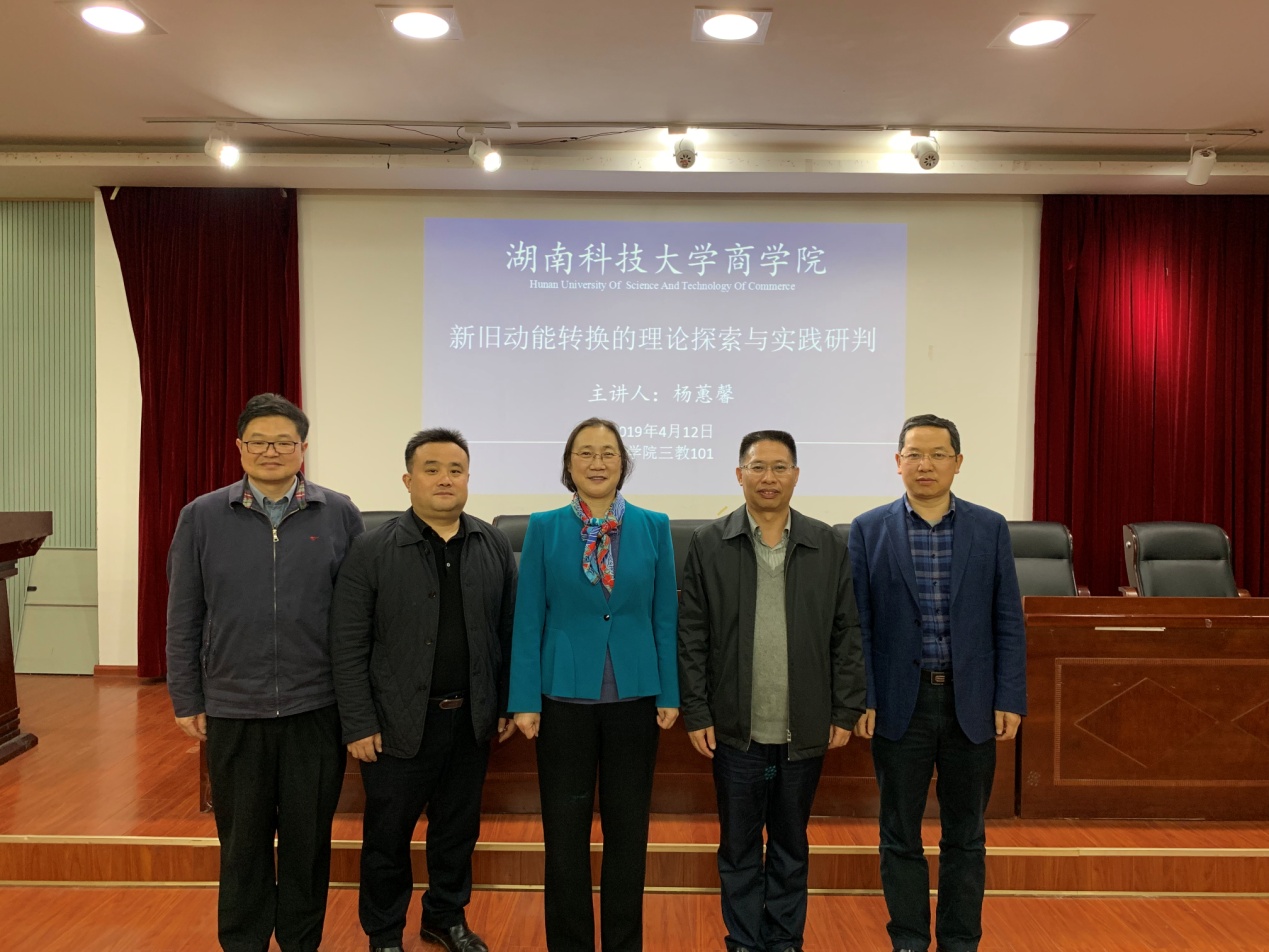 2019年4月12 日(星期五)晚上7:30,由我院举办的主题为“新旧动能转换的理论探索与实践研判”的学术报告在三教101学术报告厅举行,主讲嘉宾为山东大学杨蕙馨教授。本次讲座由刘友金副校长主持,商学院院长潘爱民教授、图书馆党委书记彭清华教授以及商学院部分老师和在读博士、硕士研究生参加了讲座。