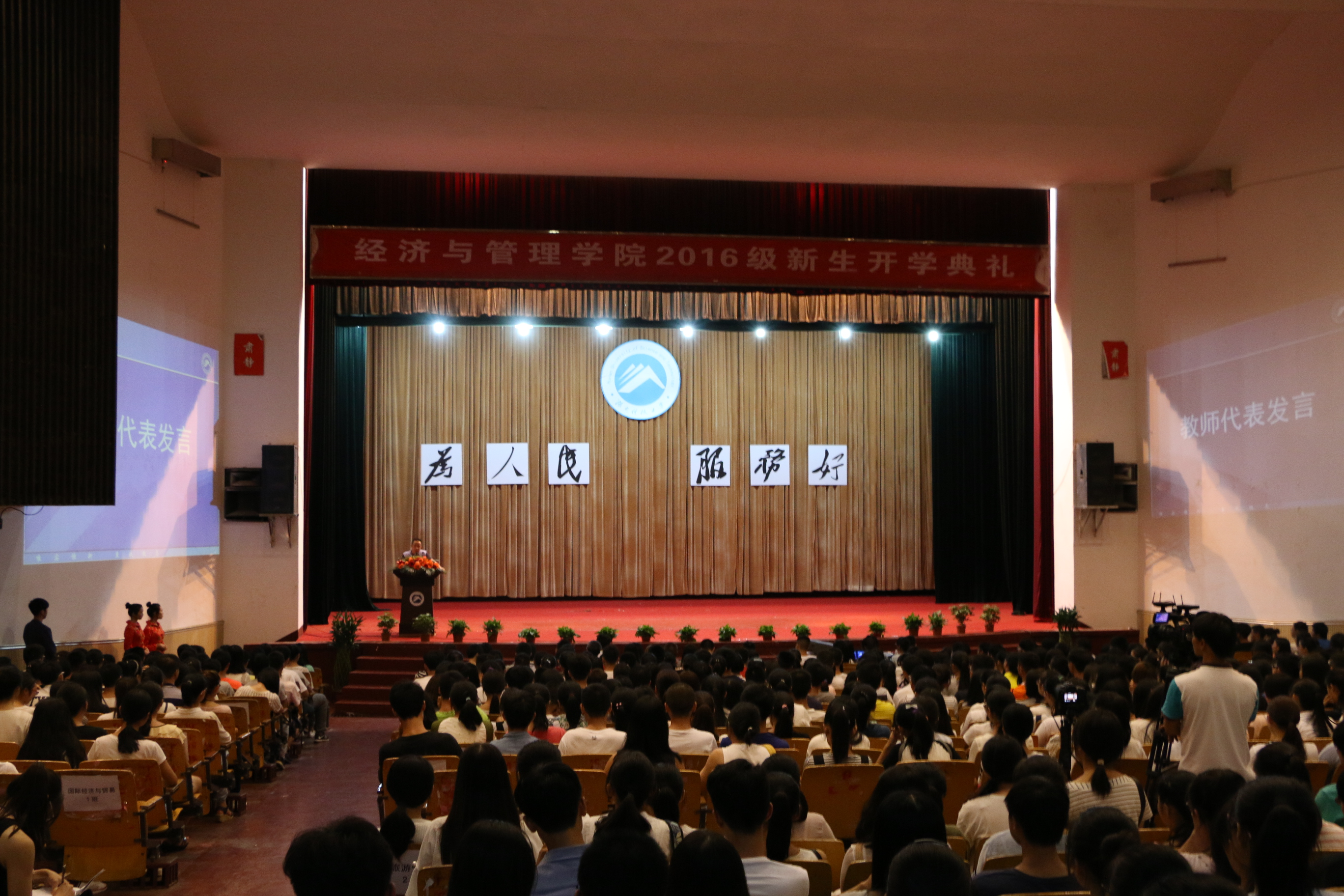 9月12日19:00,南校俱乐部响起庄严的国歌声,经济与管理学院2016级新生开学典礼拉开序幕。典礼秉承着“为人民·服务好”的院训,给新生上了大学的第一堂课。党委书记仇怡、院长向国成、党委副书记傅早霞以及副院长叶文忠等参加典礼。