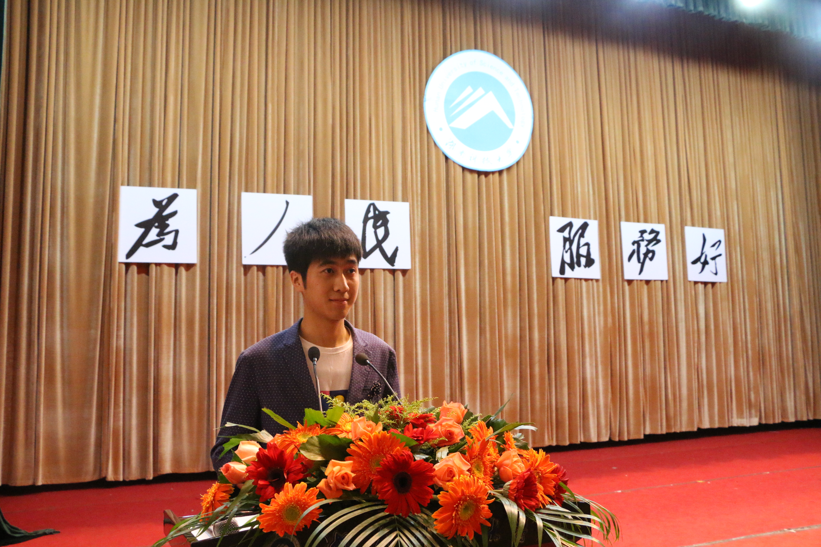 教师代表曾祥炎向新生表达了自己的殷切希望:“校园里有绚丽缤纷的樱花,有婀娜多姿的月湖,有君子好逑的窈窕淑女,更有无处不在的知识气息,希望大家能在浓厚的学习氛围中实现自己的价值。”