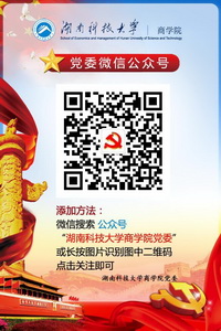 添加方法:打开微信客户端,搜索公众号“湖南科技大学商学院”和“湖南科技大学商学院党委”,也可直接二维码扫描以下图片,点击关注。感谢大家对学院工作的大力支持!