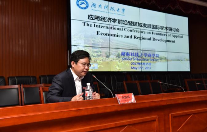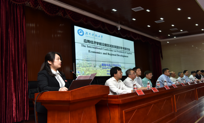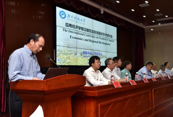 为加强我校与国内外知名高校应用经济学学科的交流,促进应用经济学学科的建设与发展,5月15日上午9:00,应用经济学前沿暨区域发展国际学术研讨会在湖南科技大学综合楼五楼东附楼会议室隆重召开。湖南科技大学校长李伯超教授出席开幕式并致辞,湖南科技大学副校长刘友金教授、校社科处处长向国成教授出席了开幕式,开幕式由商学院党委书记仇怡教授主持,社会科学处处长向国成教授主持了主题演讲。美国尼亚加拉大学Shawn Paul Daly、克里夫兰州大学教授周海刚教授、美国佐治亚州立大学教授徐振挥教授、新加坡南洋理工大学教授姚顺添教授等国外专家学者以及省内外著名应用经济学专家学者、商学院教师、博士及硕士研究生等200余人参加了国际学术研讨会。