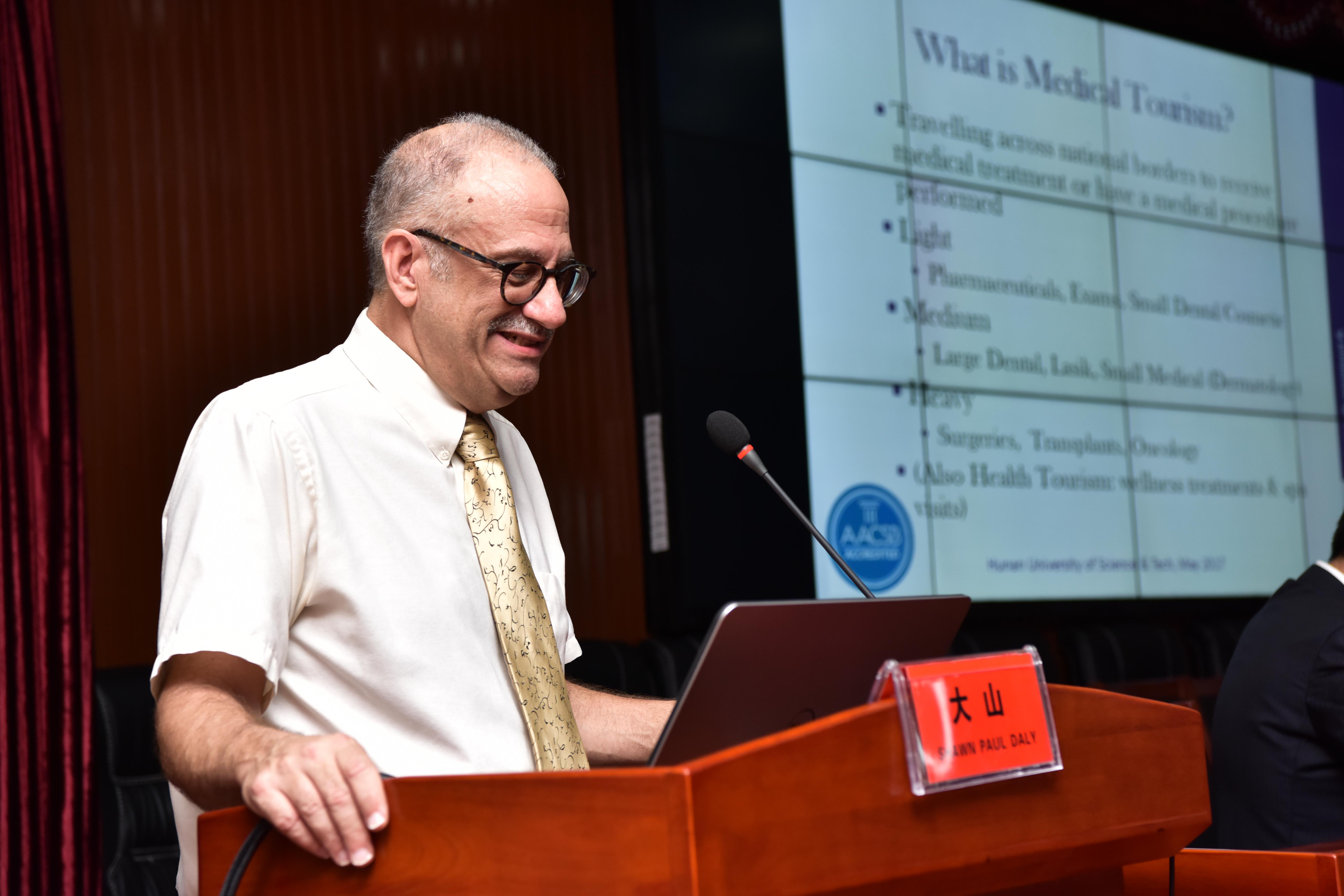 美国尼亚加拉大学Shawn Paul Daly 就“Opportunities in the Chinese Medical Tourism Industry: Consumer & Corporate Decision Maker Attitudes”进行演讲