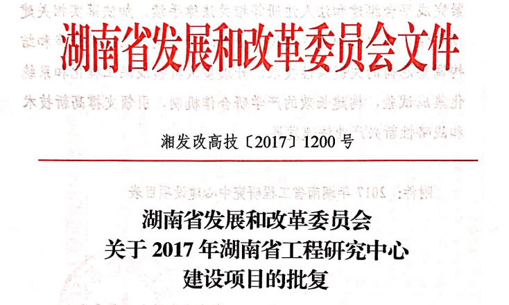 2017年12月19日,湖南省发改委印发《关于2017年湖南省工程研究中心建设项目的批复》,认定我校商学院申报的“产业发展大数据与智能决策湖南省工程研究中心”为湖南省工程研究中心,并批复同意了我校申报的建设方案。