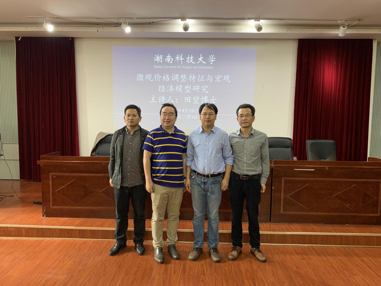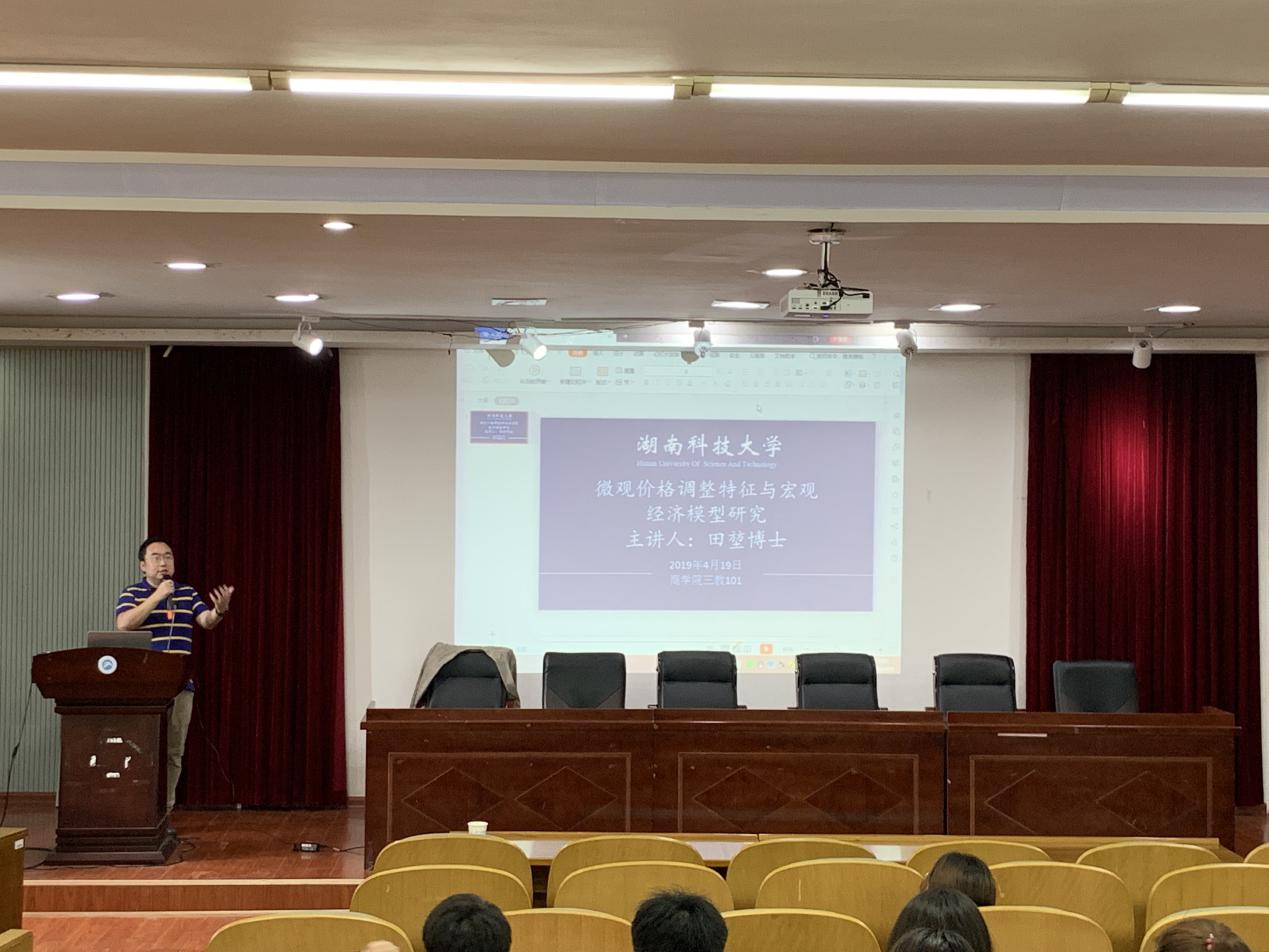 2019年4月19 日(星期五)下午14:30,由我院举办的主题为“微观价格调整特征与宏观经济模型研究”的学术报告在三教101学术报告厅举行,主讲嘉宾为英国安格利亚大学田堃博士。本次讲座由贺胜兵副院长主持,商学院部分老师和在读博士、硕士研究生参加了讲座。