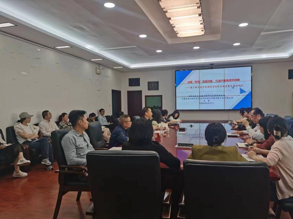 会议从当今时代背景与我国政策入手,总体阐述了产教融合的重要意义,讲述湖南省高新区的创新发展成效与新时代使命。会上,宋捷指出,要加强“双高”资源对接,发挥院、校多方优势服务高新区高质量发展,探索高校实施“双高”对接的方式与路径。其中,必须充分发挥商学院学科优势,如我院的工商管理学科、应用经济学学科以及湖南创新发展研究院;搭建串通高校、园区、企业的“双向快车道”;常态化组织开展系列成果转化对接活动,打通高校、园区、企业之间技术信息供需不对称的“黑障”。