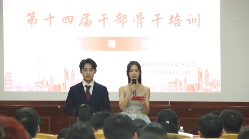 4月15日下午,由湖南科技大学商学院学工办主办,团委组织部、分团校承办的第十四届干部骨干培训之开幕式于第三教学楼101报告厅举行。商学院党委副书记王鹤、学工办主任陈攀、党建组织员蔡美玲、辅导员老师代表出席本次活动,参与本次活动的还有商学院团委学生会主要学生干部。
