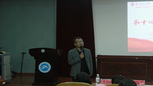 4月23日晚上20:45,由湖南科技大学商学院学工办主办,团委组织部、分团校承办的第十四届干部骨干培训之闭幕式于第三教学楼101报告厅举行。商学院党委副书记王鹤、党建组织员蔡美玲、辅导员老师代表出席本次活动,参与本次活动的还有商学院团委学生会主要学生干部。