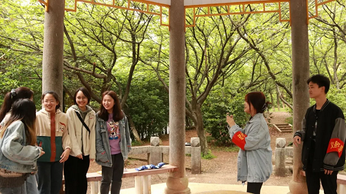 樱花园作为湖南科技大学一项标志性观光景点,在四月到来之际,吸引了校内外众多游客。在这个樱花满园的时节,校内师生、校外人士会齐聚在樱花园,共赏烂漫樱花。为了让参观樱花园的游客们拥有良好的观赏体验,义务导游们会在这天为广大游客提供导游与讲解服务。通过导游们的讲解,游客们可以了解科大樱花园的历史文化与赏樱亭的建筑特点。
