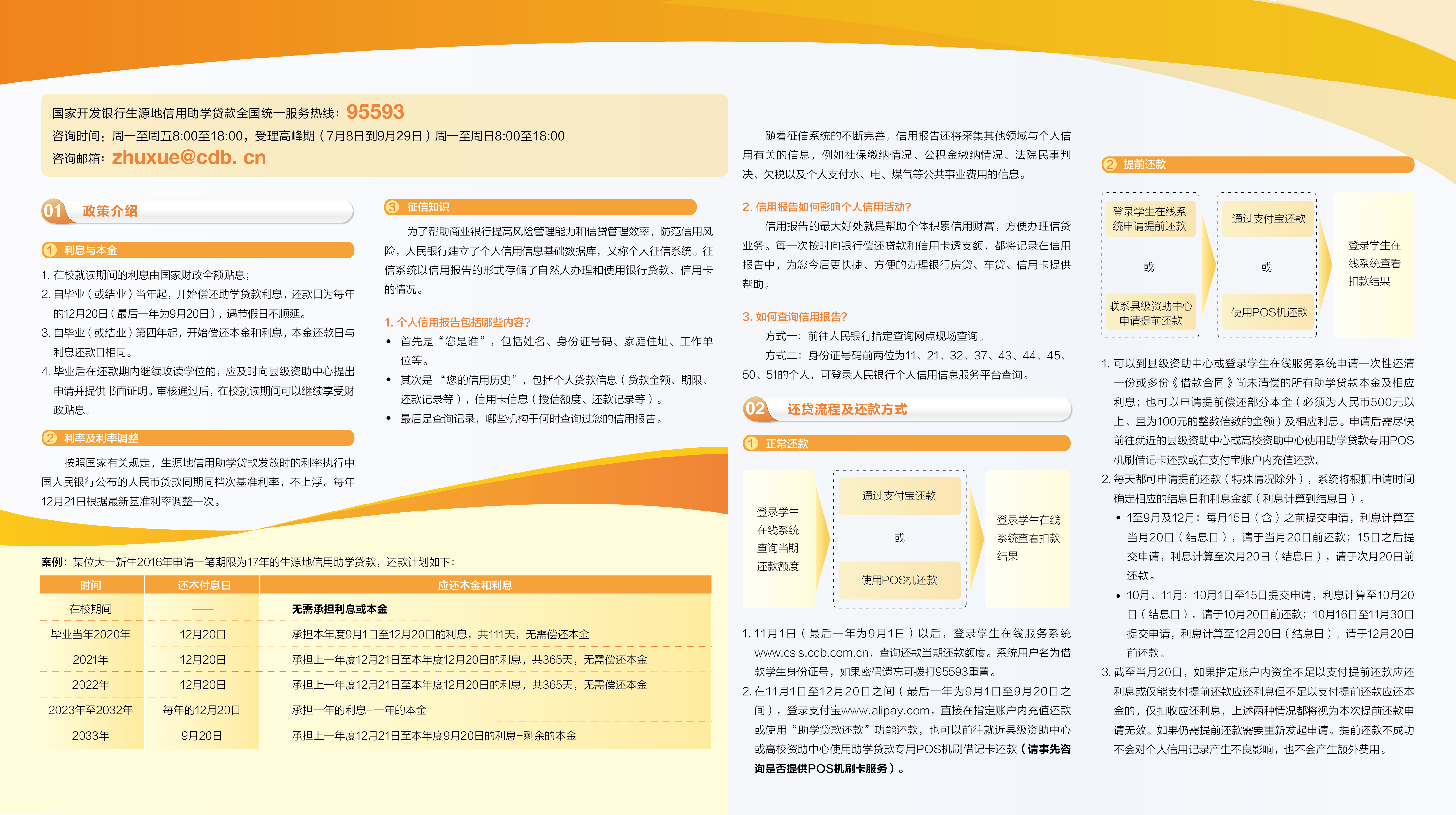 如有助学贷款相关问题,可拨打国开行助学贷款呼叫中心95593咨询。此外,也可访问国家开发银行助学贷款信息网(http://www.csls.cdb.com.cn),点击页面左侧的“各分行及资助中心联系方式”,查询国开行各分行、各省资助中心、各县资助中心及各高校联系方式。