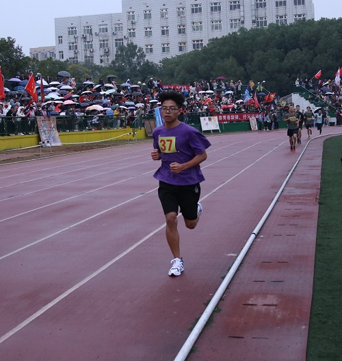 16:59,男子5000米比赛相继进行,商学院参赛者齐佳伟、肖江华也取得了优秀的成绩。赛后他们表示:“心中当然是向着第一,不过只要尽力,不留遗憾,就是自己最大的心愿”。
