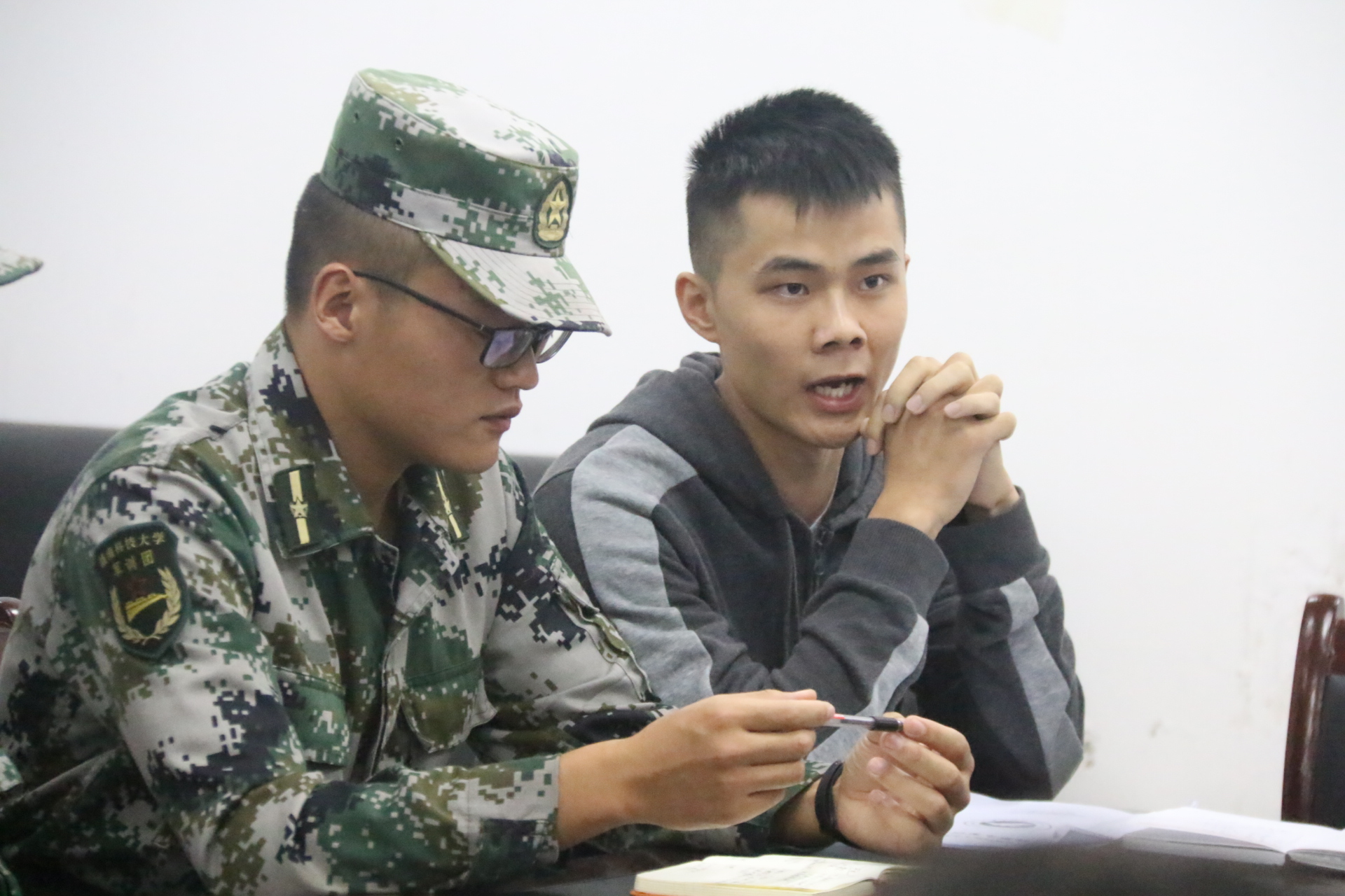 “召开本次见面会的目的是及时沟通军训期间可能出现的问题及其解决,保证训练顺利开展,希望大家踊跃发言。”见面会在石阿霞、翟广达的主持下召开。“大家好,我是一连连长吴锋龙,有多次带训经验……”从吴锋龙开始,各教官依次进行自我介绍并表明自己的工作态度和严格开展训练的决心。