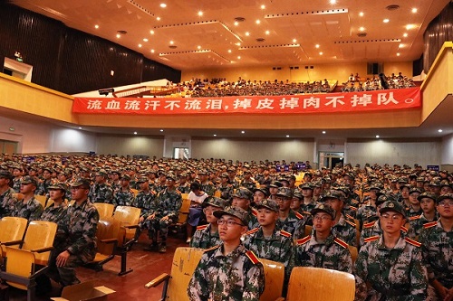 大会上,湖南科技大学商学院党委副书记傅早霞发表讲话:“军训,是集体主义精神的熔炉。”他指出,军训的目的就是要培养大学生的爱国主义精神和团结协作的精神,弘扬军人严谨认真的工作作风,增强大学生身体健康素质,为祖国培养“有理想、有道德、有文化、有纪律”的社会主义接班人。