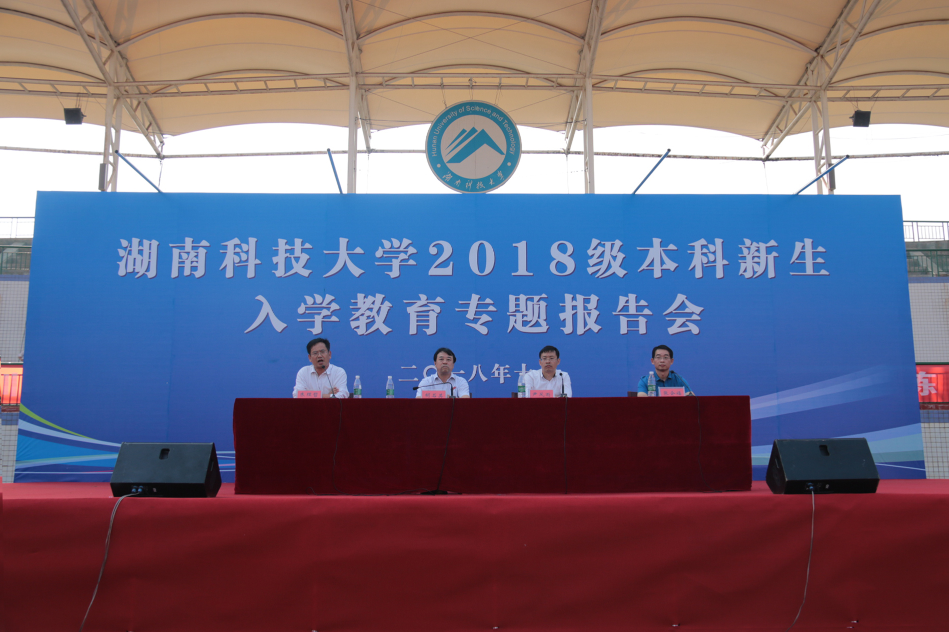10月6日15:20,湖南科技大学入学教育专题报告会在北校田径场开展,我校副校长胡石其、学生工作处处长尹风雨、保卫处处长兼武装部部长朱理哲、网络与信息学院教授张金福以及18级全体新生参与本次报告会。