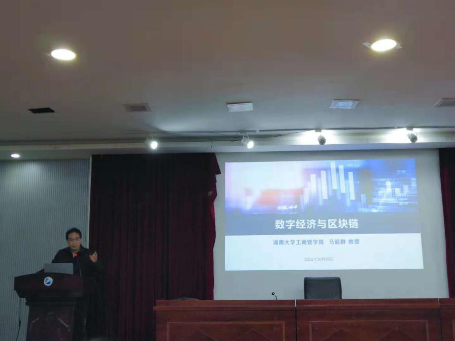 2018年10月9日下午15:30,商学院“立言讲坛”第一百三十六讲“数字经济与区块链”于三教101学术报告厅举行。本次讲座由湖南大学工商管理学院院长马超群教授担任主讲,湖南科技大学刘友金教授主持,我院部分老师及研究生参加了本次讲座。