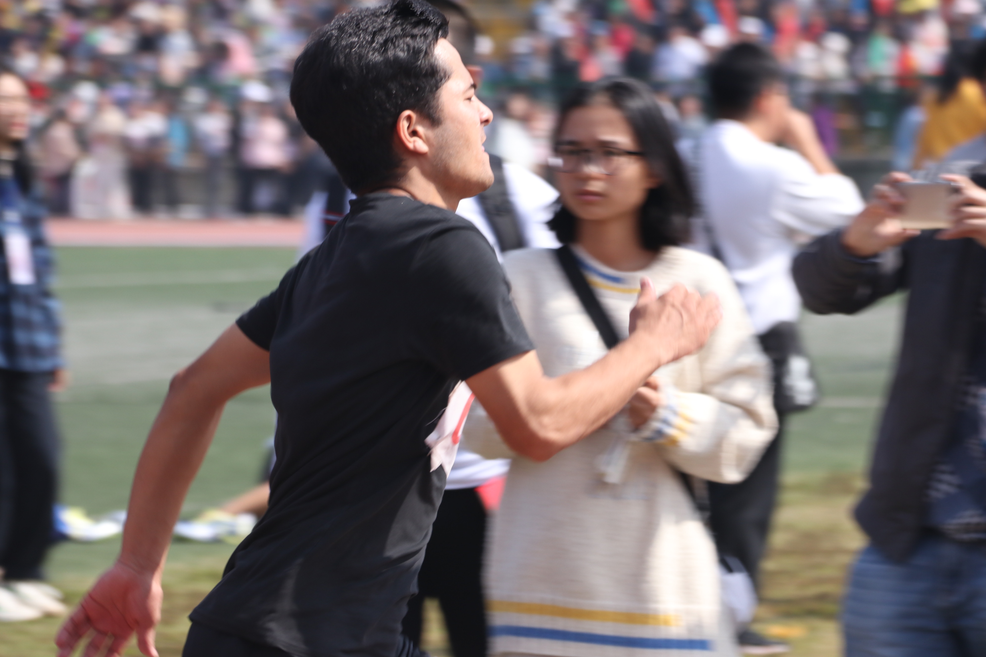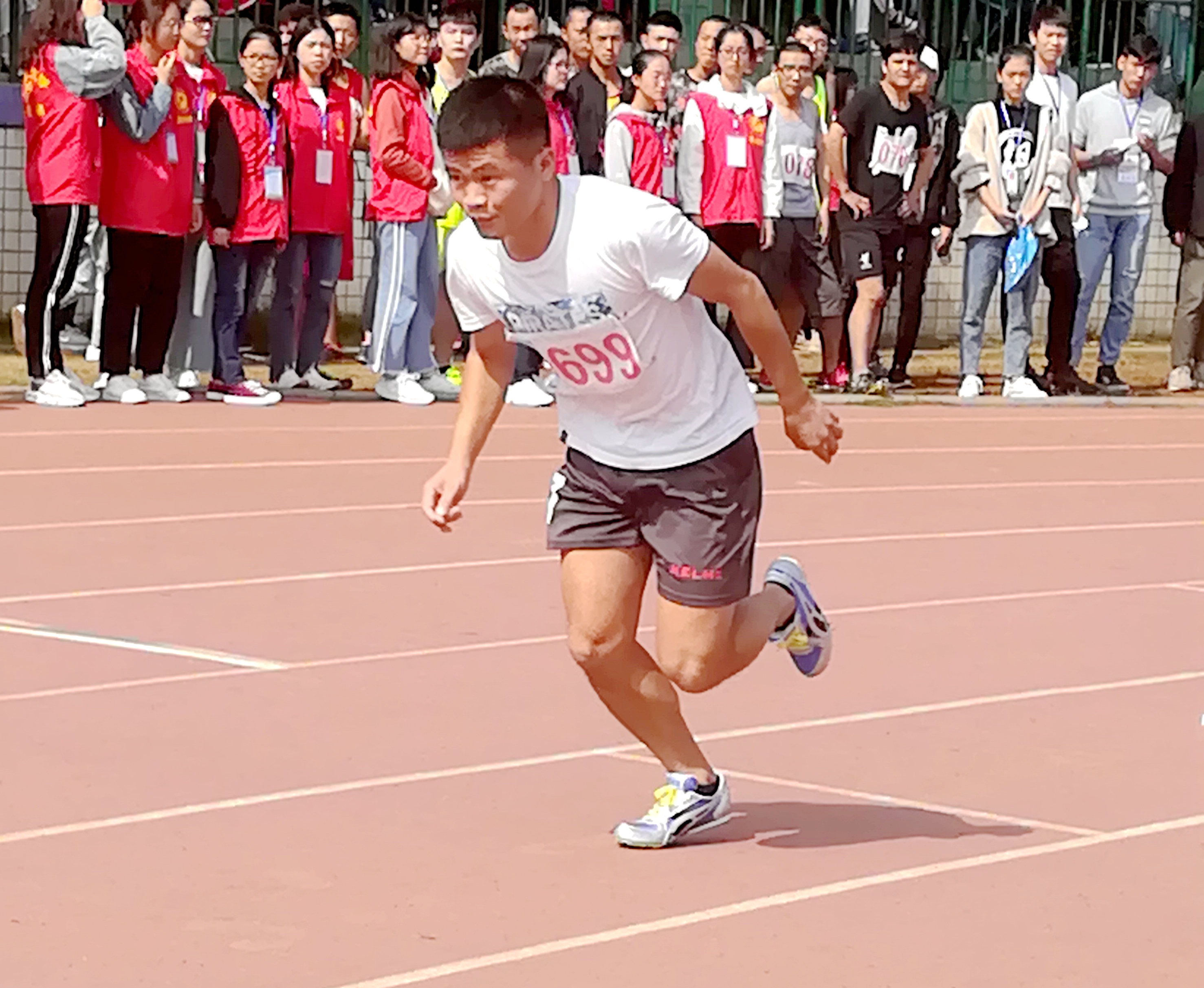选手黄婷目光坚定,气势如虹。面对强劲的对手,心怀学院的荣誉,黄婷没有放松的余地。一声令下,她便卯足了劲向前冲,不久便把对手甩在身后。她咬着牙冲过了终点线,最终为商学院争得女子组400米决赛第三名的荣誉。接着举行的男子组决赛中,孙健亦收获了第七名的优异成绩。