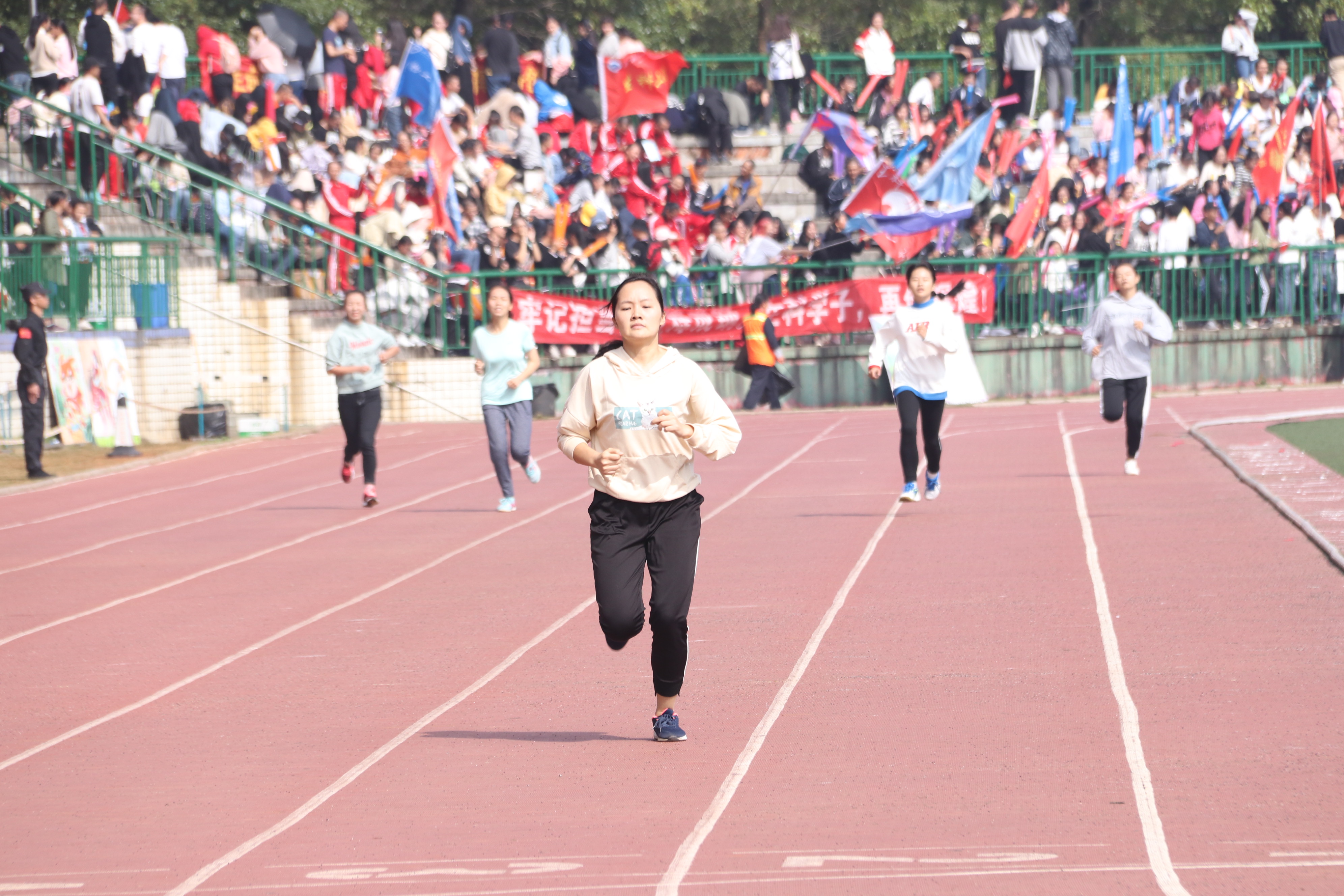 “好累!”这是黄婷跑完后说的第一句话,“但商学院的荣誉是我不竭的动力!接下来的项目我会更加努力,争取再创佳绩!”据悉,黄婷不仅参与了400米比赛,200米、1500米竞赛中也有她的身影。