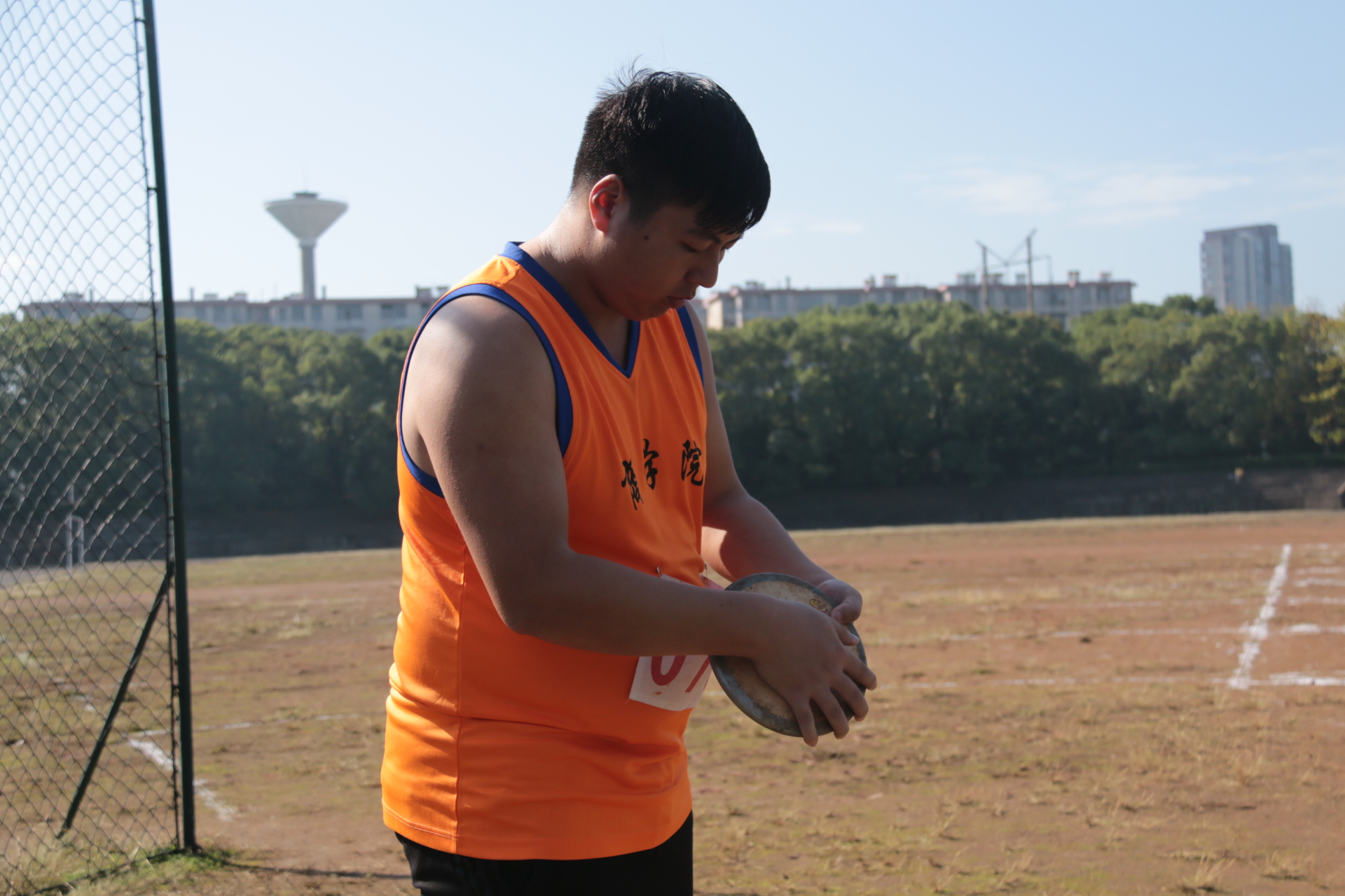 10月27日早上8:40,天空万里无云,男子组铁饼预决赛如约而至,旧北田径场上运动员们早已聚齐。商学院三名运动健儿为学院荣誉出战,他们分别是赵云涛、宋甘雨、杨宗霖。