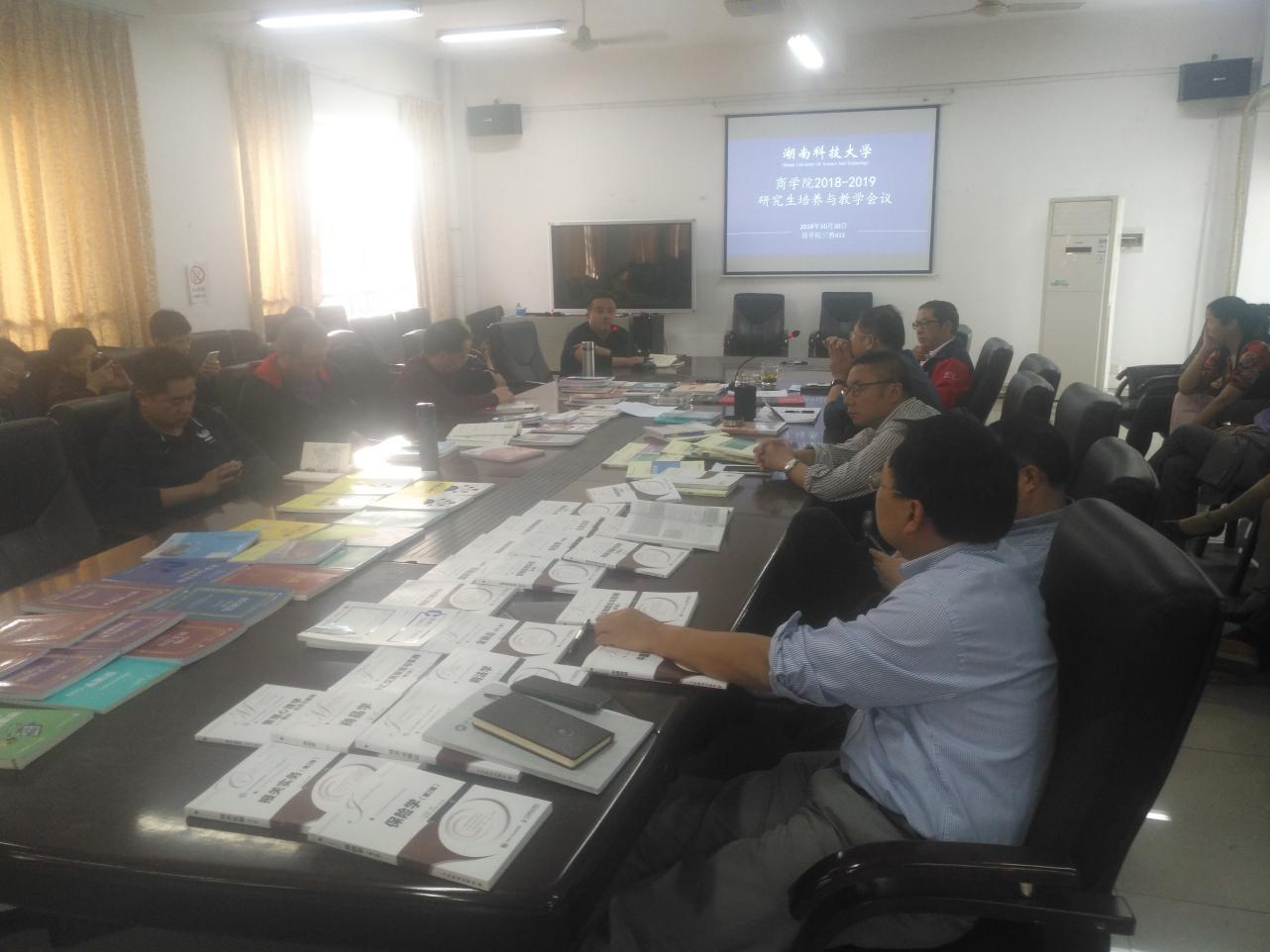 颜剩勇副院长带领导师们学习了《湖南省全面落实研究生导师立德树人职责的实施细则》、《湖南科技大学硕士研究生指导教师管理办法》和商学院研究生导师招生资格确定细则等文件,传达了最新的研究生培养与教学的政策动态,分析了研究生培养与教学的现状,并对培养方案的修订做了具体要求。