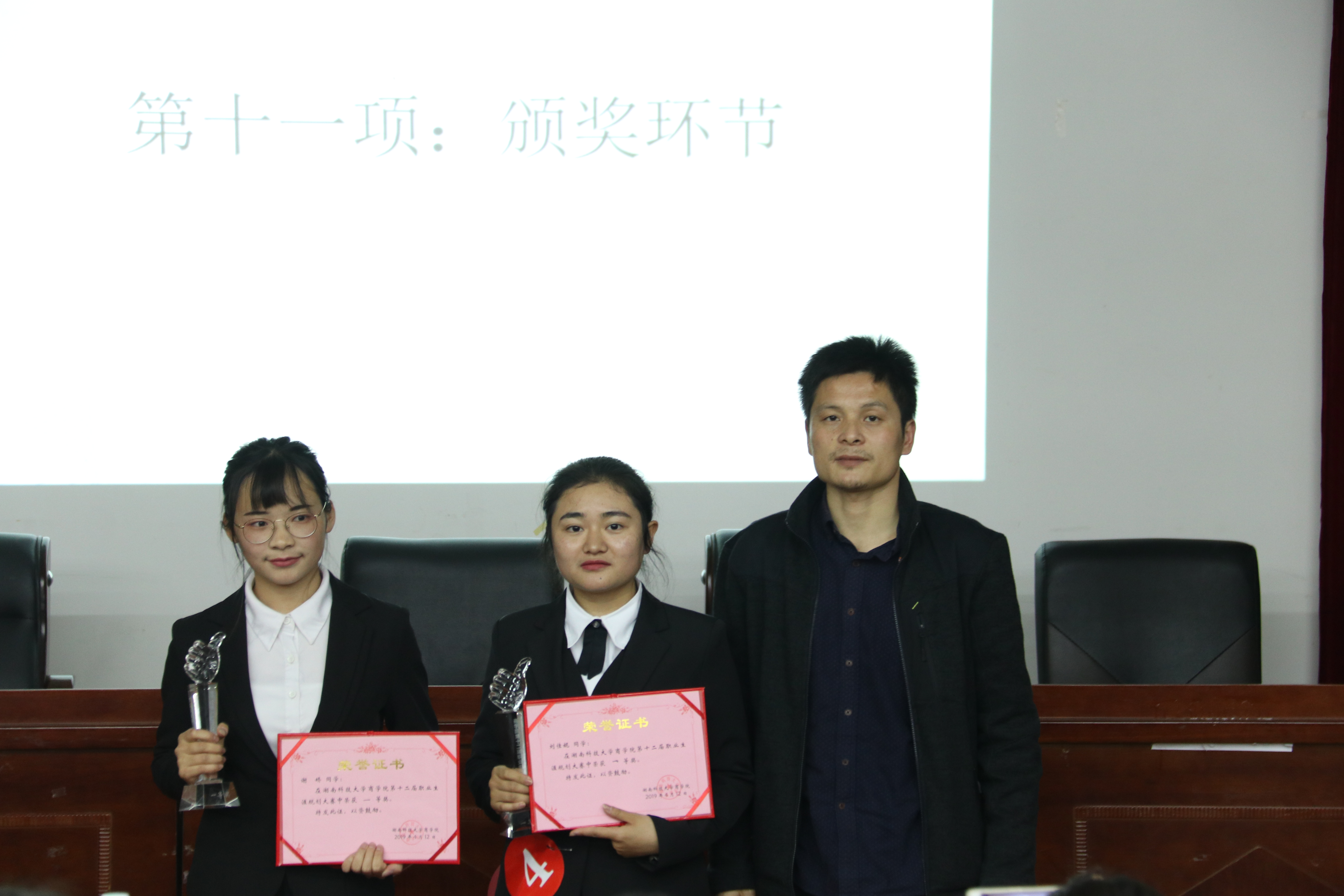 2019年4月14日19:00,由湖南科技大学招生就业处主办,商学院团委学生会承办的商学院第十二届职业生涯规划大赛决赛于第三教学楼101会议室顺利举行。院学工办主任陈攀老师、就业指导老师郭志军老师、18 级辅导员李博老师,商学院学生会副主席王彦齐及范浩、前学生会副主席赵钰琛,团委副书记杨淑雯、李晓静,担任本次决赛评委。经过初赛、复赛,共有8名选手脱颖而出,逐鹿决赛现场。
