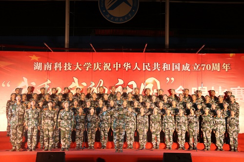 为庆祝祖国70周年华诞,进一步弘扬大学生的爱国主义精神,展现科大学子良好的精神风貌。9月17日,湖南科技大学军训主题合唱比赛于北校田径场举行,湖南科技大学副校长胡石其、学生工作处处长尹风雨、军训团团长朱理哲、武装部领导及各院党委书记等受邀出席本次活动。商学院党委书记贺胜兵、党委副书记傅早霞、学工办主任陈攀、商学院19级新生辅导员赵畅宇及高峰前往观看。