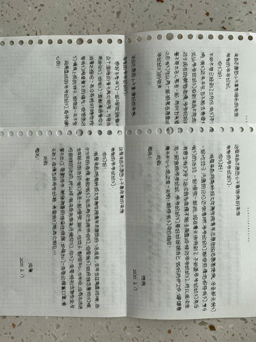 征集的视频其内容不仅有唱歌、跳舞等才艺表演,也有志愿者想对爷爷奶奶们说的话。17级物流管理专业方新鹏在视频中向老人们普及了新冠肺炎的防护知识和注意事项,提醒老人们要戴好口罩、勤洗手、多消毒。而收集的15封信件则是承载着志愿者对爷爷奶奶们的思念之情。19级人力资源管理专业饶佩在信中写道:“去年冬至与爷爷奶奶们一起吃饺子、汤圆的记忆还很清晰。现在,春天到了,希望我们早日相见。”这些信件由志愿团成员统一誊写并用湘潭方言录音后,转交给南盘岭工作人员,然后工作人员将志愿者们包含温暖与思念的一声声问候传递到老人手中。