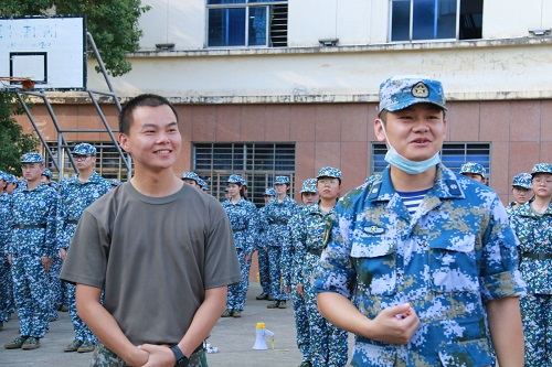 各教官迅速整队后,新生们精神抖擞,身姿挺拔地站在了各领导面前。朱参谋首先表达了对参训学生的关心,并希望同学们能够充分发扬严守纪律、吃苦耐劳的精神,以高标准、严要求完成军训任务。秋分已至,但天气依旧酷热,朱参谋提醒同学们在认真训练的同时一定要做好自身防护,注意防暑防晒。另外,朱参谋还询问了教官关于军训的具体情况,并说道:“希望各位教官在带训时能够做到认真负责,严格要求,努力完成好本次军训任务。”
