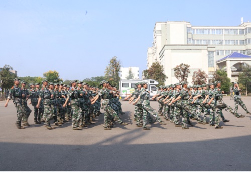 随着激越昂扬、催人奋进的音乐响起,方阵队的训练由此拉开了帷幕。旗手高举着旗帜,队员呐喊着口号,铿锵有力、整齐划一的步伐声顿时响彻了整个训练场地。场地上旗帜飞扬,口号声震耳欲聋,每一个方阵队都无不展示着军人的气魄和当代大学生应有的蓬勃朝气,高涨的气氛,鼓舞着在场的每一个人。