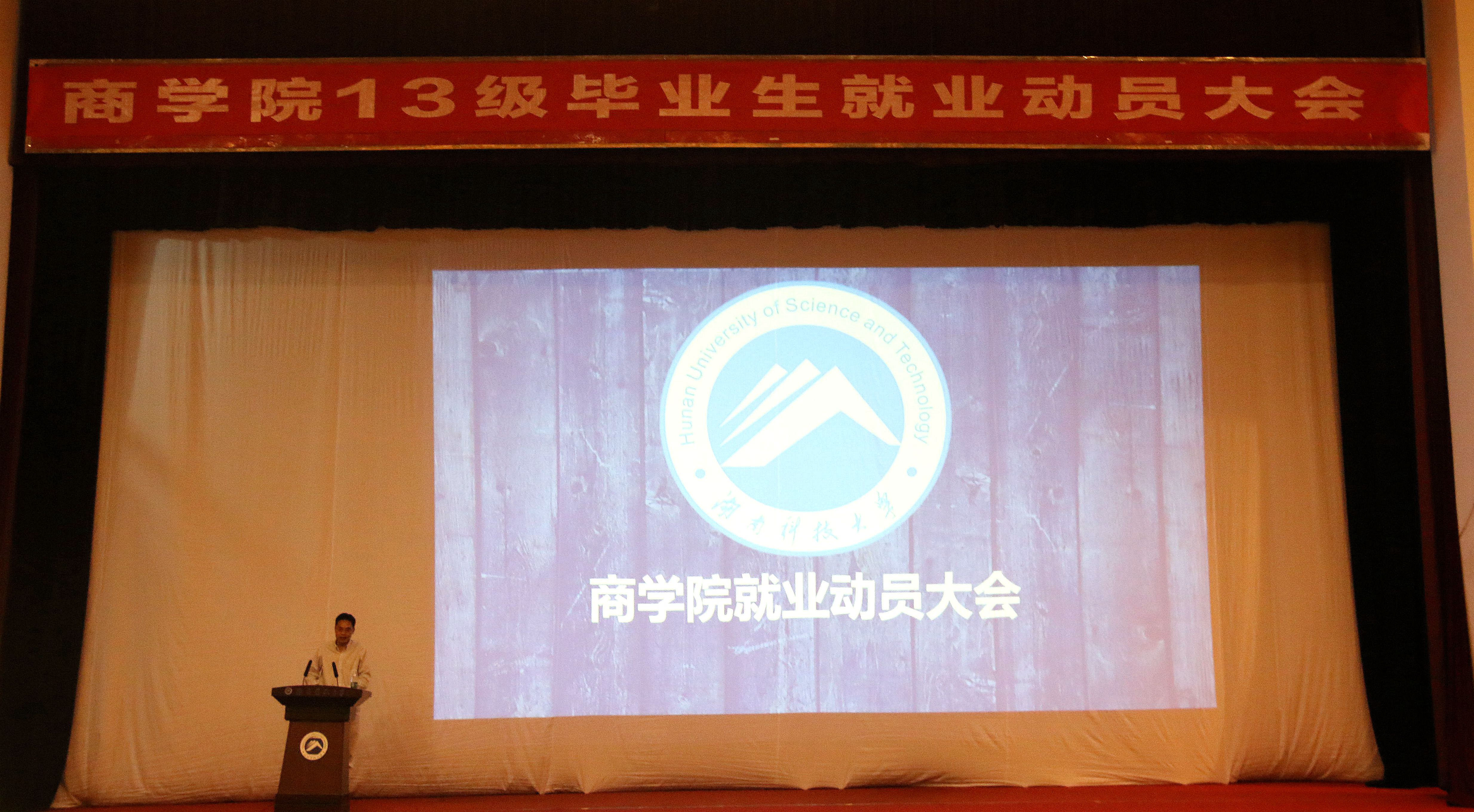 在当今社会严峻的就业形势下,为提高我院毕业生的就业积极性和主动性,2016年9月29日19:30,由商学院就业服务部承办的2017届毕业生就业动员大会在南俱正式拉开帷幕。商学院党委副书记傅早霞、辅导员杨美琴、丁文彬、陈攀以及2013级全体同学参加了本次大会。