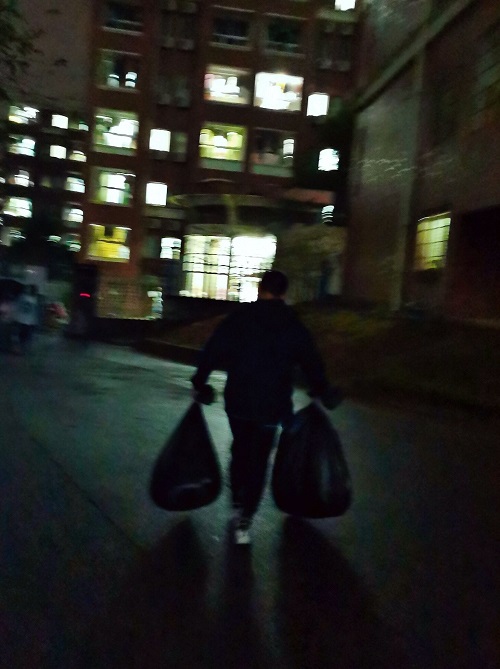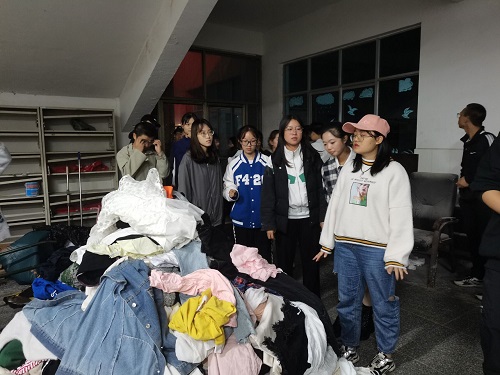 10月15日19:30,在本次活动负责人石东鹏的组织带领下,志愿者们有条不紊地前往指定地点,下寝收集旧衣物。志愿者们轻轻地叩开一扇扇门,搭建起科大人为需者传递“心”温暖的桥梁。“学姐你好,我们是商学院青年志愿团,现在我们在下寝收集旧衣物,请问可以打扰一下吗?”“好的,请等一下……这些衣服都是的……”