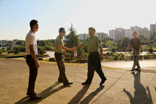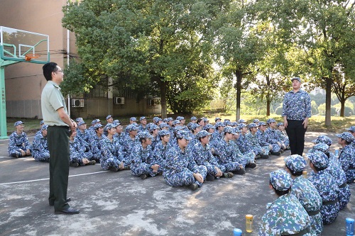 紧接着,老师们对各排教官及新生进行慰问,党委副书记傅早霞一边帮新生整理衣领,一边耐心询问新生:“你现在感觉怎么样,如果身体不舒服一定要及时向教官打报告,要在保证身体健康的前提下顺利完成军训任务。”这名新生目视前方,点了点头,大声回答道:“谢谢老师关心,老师辛苦了。”而各排也在班长的带领下齐声喊道:“祝老师们中秋快乐,老师们辛苦了!”一时间,新生们的问候声在训练场上回荡。