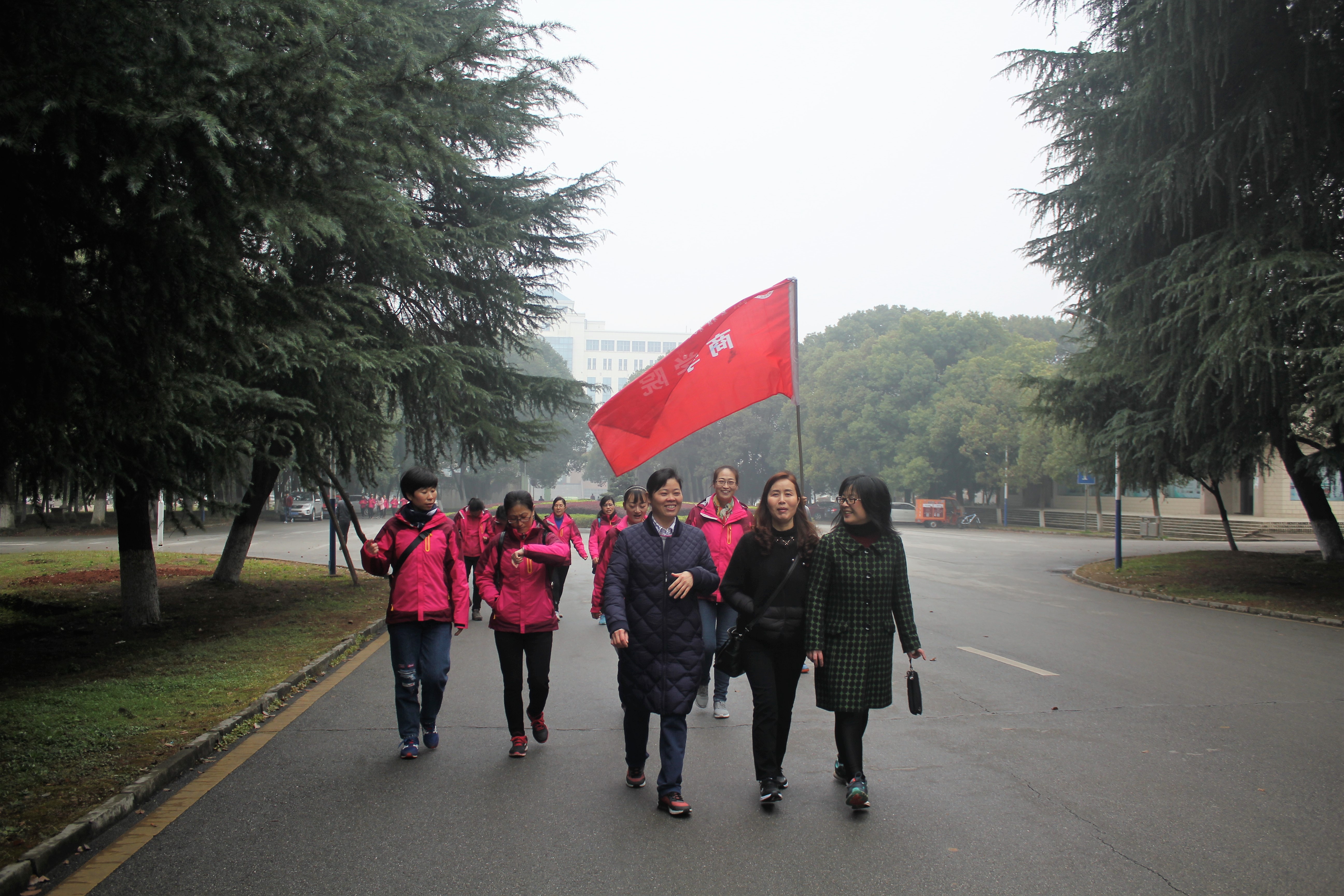 为推动我校教职工全民健身的开展,动员广大教职工传承长征精神,追求健康生活,引领社会主义核心价值观,绿色出行,同时营造和谐友好的节日氛围,庆祝“三八”妇女节。2017年3月7日14:10,由校工会主办的“美丽校园行——健步走”活动在三教前坪隆重启动。骤雨初歇,草木青青,商学院各位老师早早就陆续到活动现场集合。老师们身穿统一的院服,换上轻快舒适的运动鞋,有条不紊地进行着准备活动,还时不时讨论一下此次健步走的行程,容光焕发,神采奕奕,自信满满。活动开始后,老师们跟着旗手一起,昂首阔步,精神抖擞地大步迈进,开始绕行科大校园。一路上,他们谈笑风生,聊着天迈着步,走向可以领取签到卡的综合楼,确认行程。料峭春寒掩不住满园春色,路程虽长难不住拳拳热火,老师们一路坚持着,幽默而风趣的氛围为他们减去不少疲累。