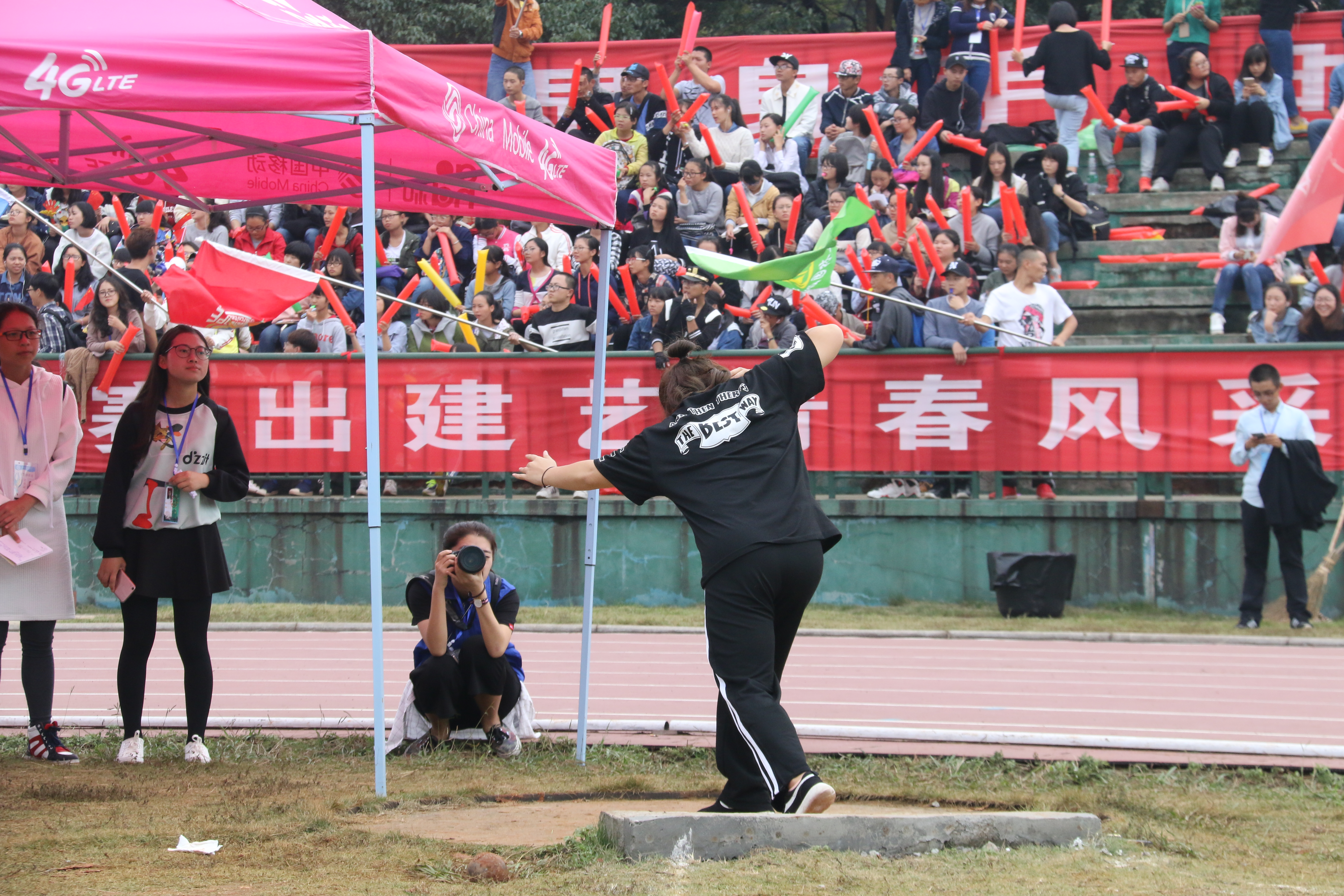 15:00,女子铅球比赛在同一地点展开,场边热烈地掌声使得比赛气氛不断高涨。经过前面三十多位选手上场完毕之后,我院0684号谢亚芬终于等来了施展拳脚的时刻,她神色从容地走到线内,右手执球,置于颈后,接着伸直了左臂,右腿随之压成弓步,左腿绷直,准备掷球。随着右腿小幅一弯,她轻吼一声“哈!”右手便顺势将铅球推出,划破阴冷的空气,把大地砸出一声闷响。霎时间众人掌声连连,惊叹不已。最终,谢亚芬以8.74米的好成绩摘得桂冠,实现了其大学生涯中铅球项目四年魁首的梦想,为自己的校运会之旅画上了圆满的句号。此外,0687号李正文和0685号李霜也代表我院参加了女子组铅球比赛。