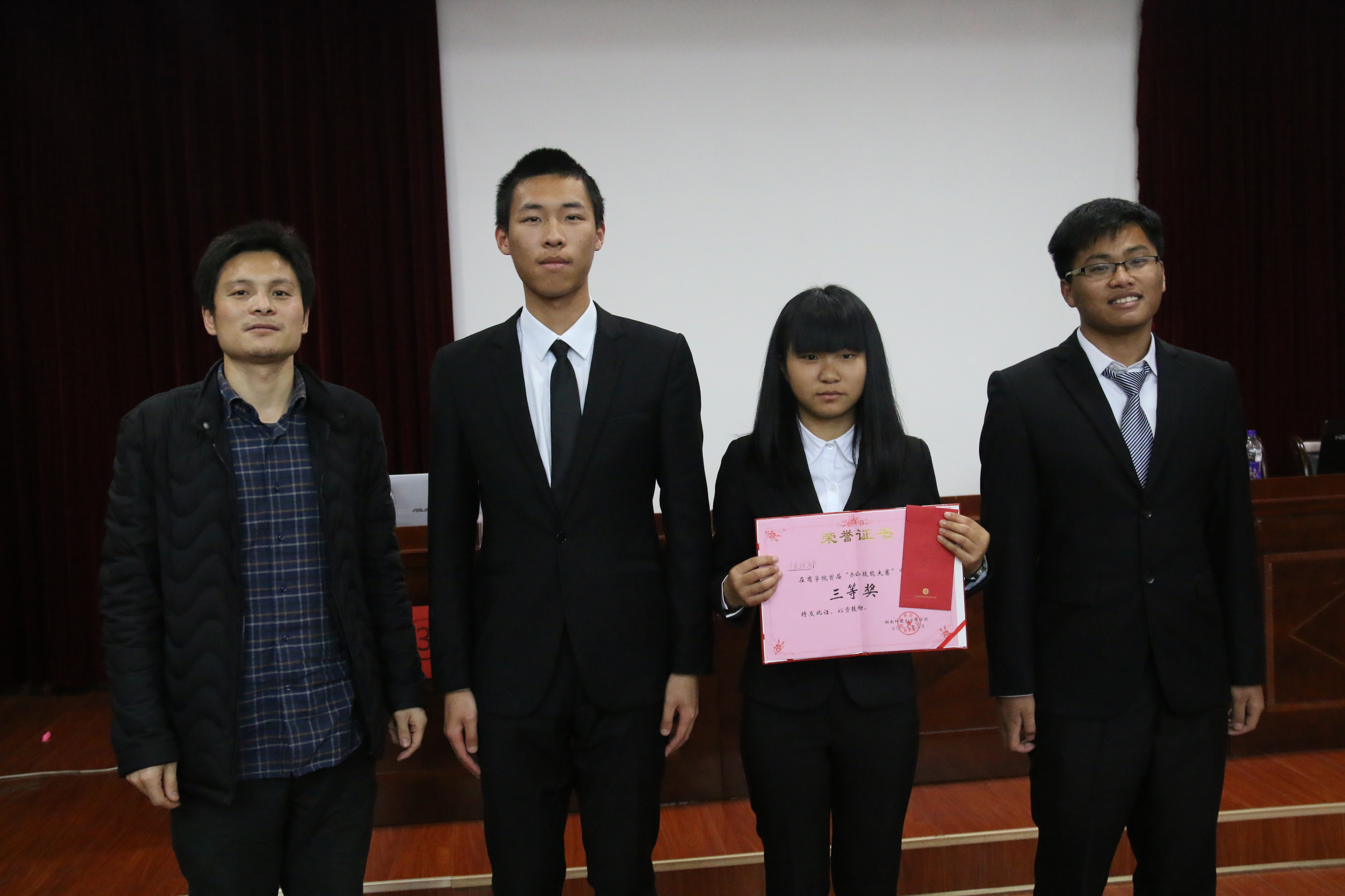 赛后,16级辅导员陈攀老师为参赛小组颁发证书和奖杯,并与参赛选手合影留念。“友谊第一,比赛第二”,正如学习部参赛代表范浩所说,“虽然没有拿第一名,但我们三个队友都表现得不错,大家都有得分。”